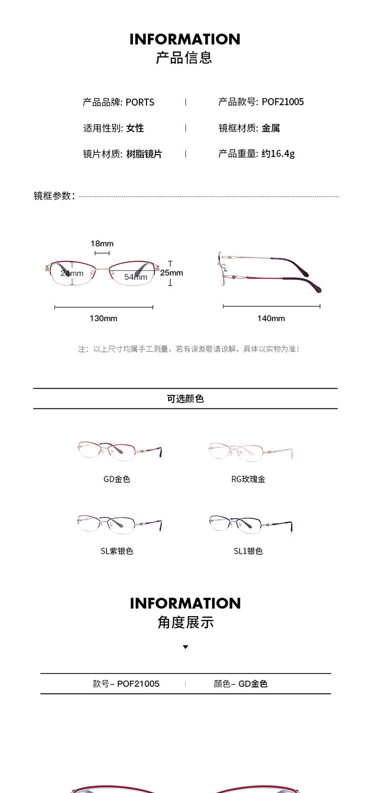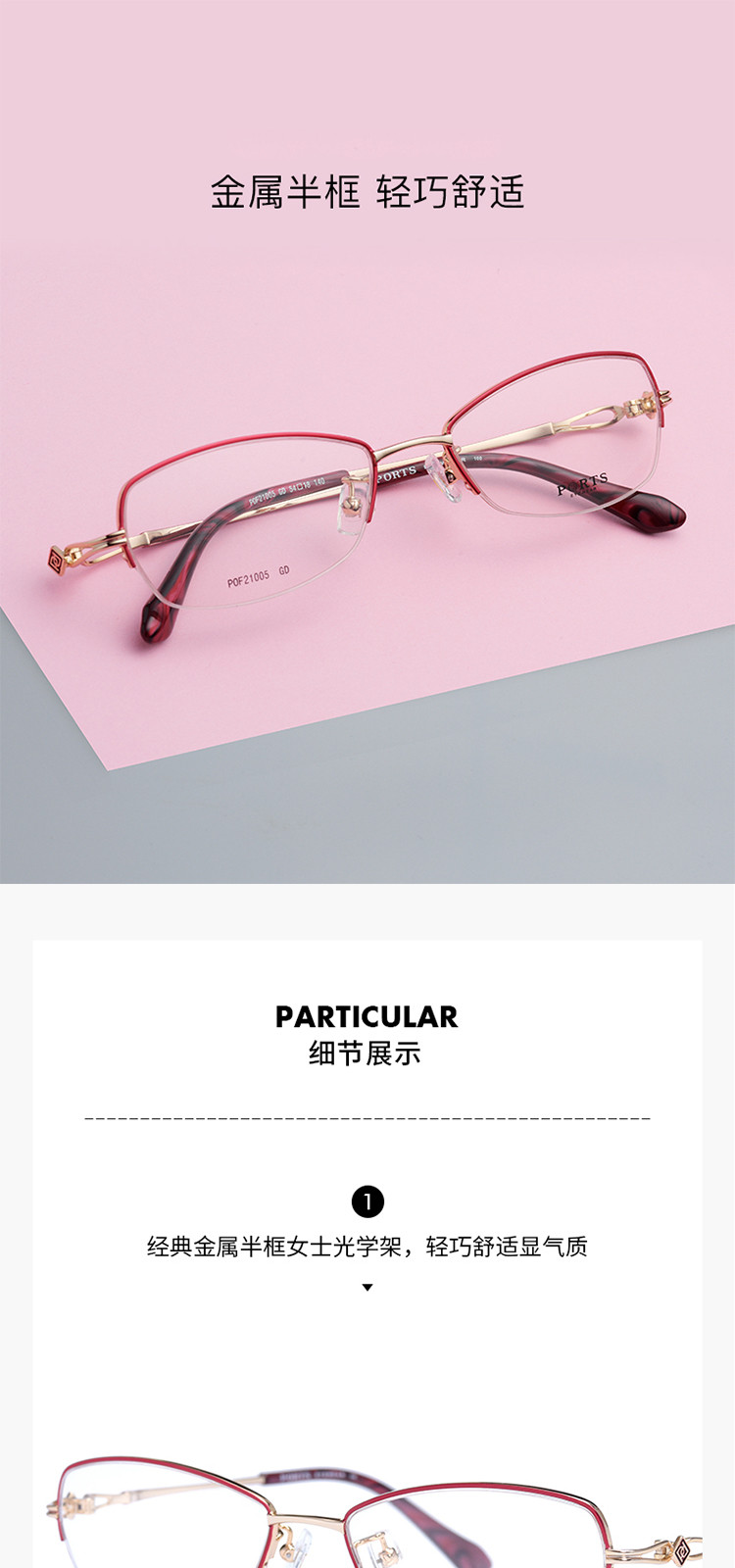 商品名称:PORTS日常百搭知性简约合金眼镜架POF21005 667594