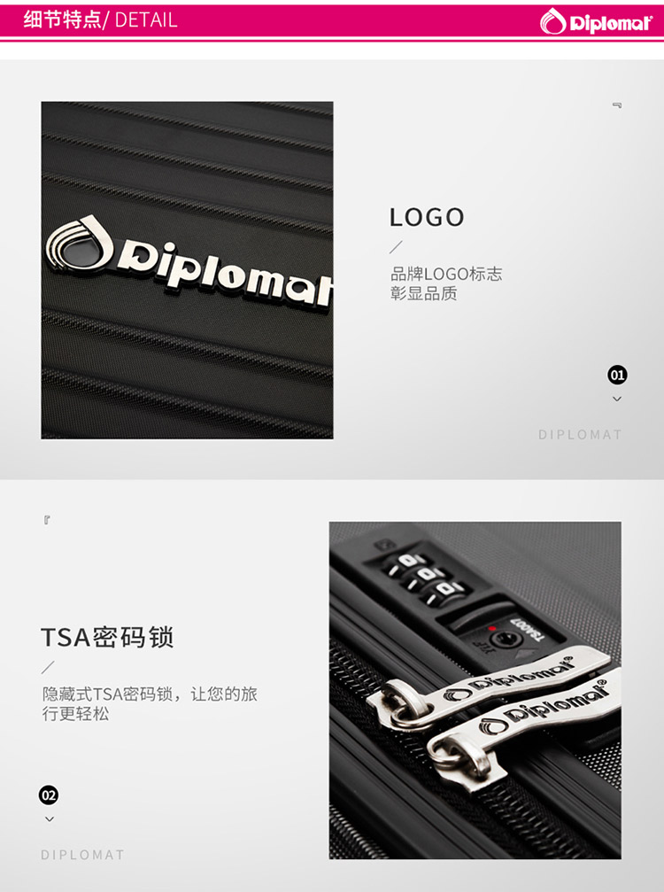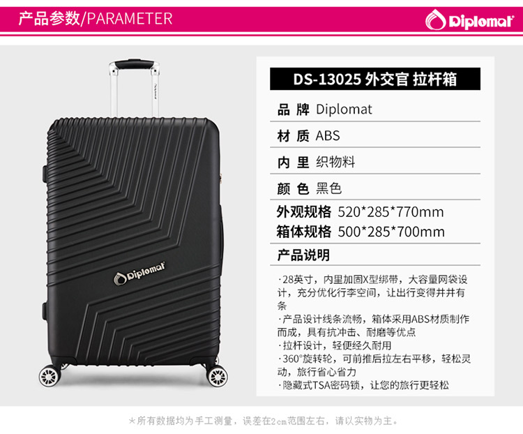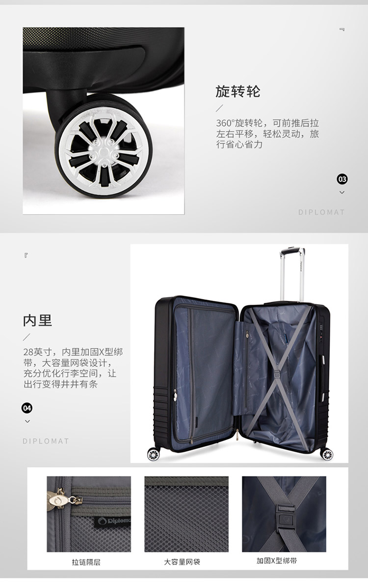 商品名称:Diplomat 外交官简约时尚万向轮拉杆箱DS-13025 28英寸
