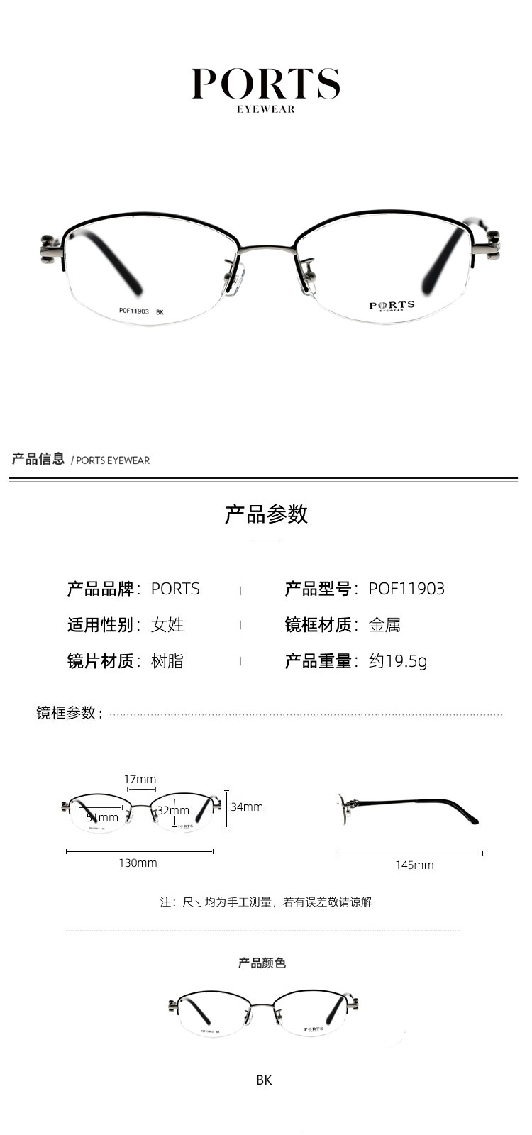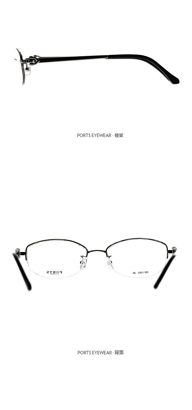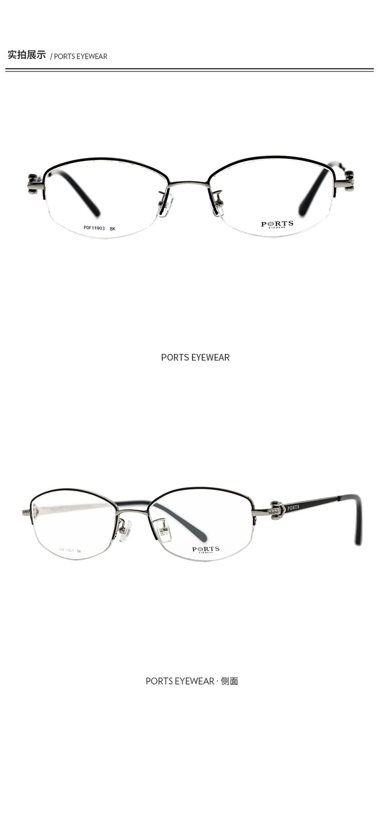 商品名称:PORTS女款商务经典椭圆小框半框金属眼镜架POF11903 332746