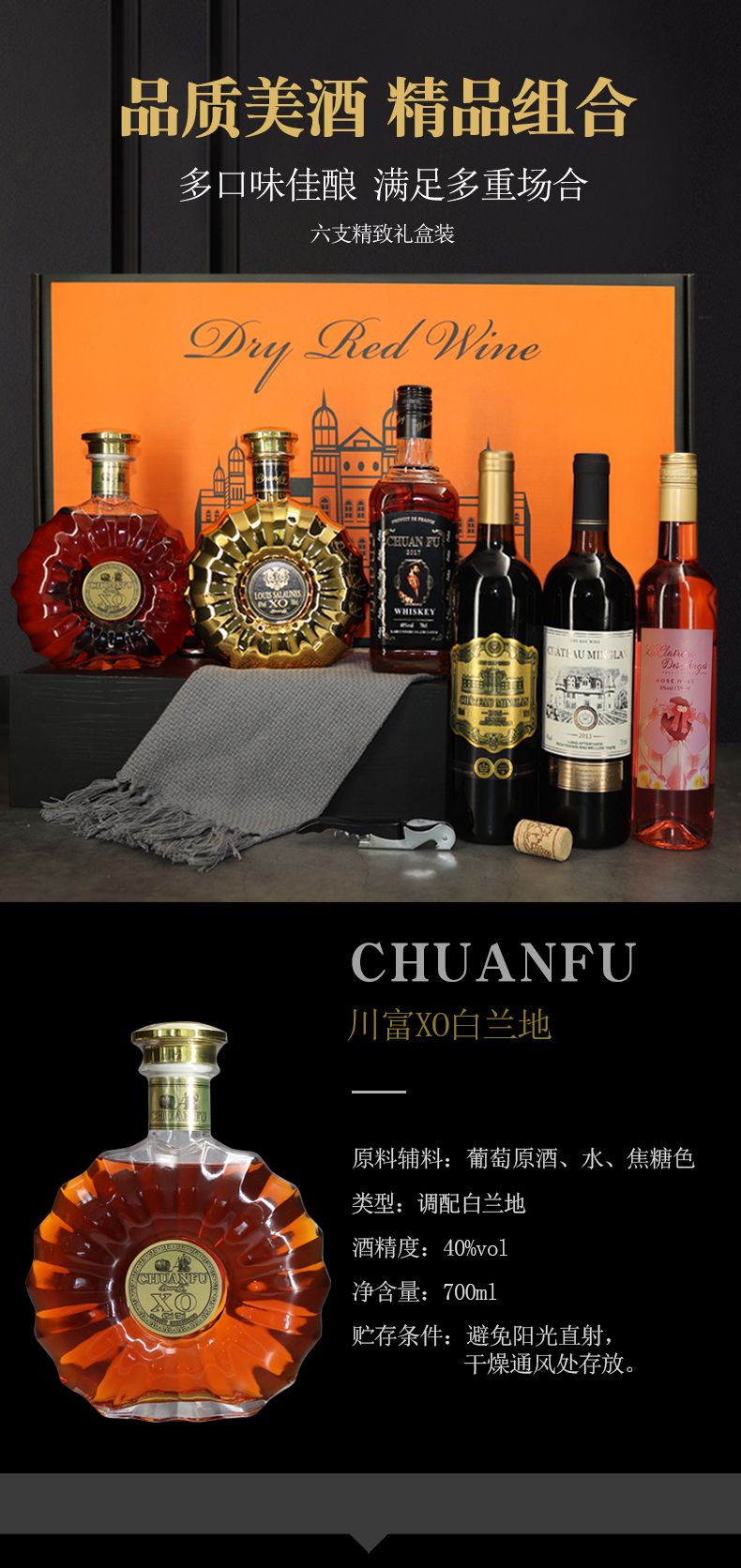 商品名称:双XO白兰地 洋红酒6支橙色套盒礼盒装
