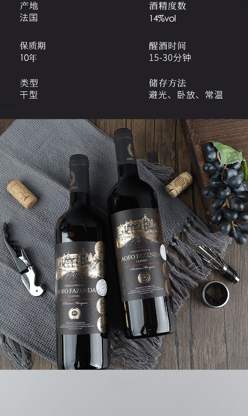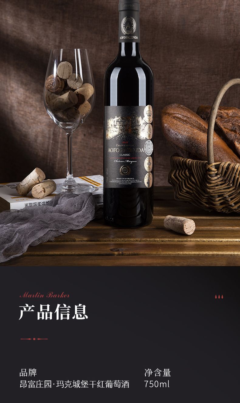 商品名称:【750ml*6瓶】法国原酒进口昂富庄园玛克城堡干红葡萄酒红酒