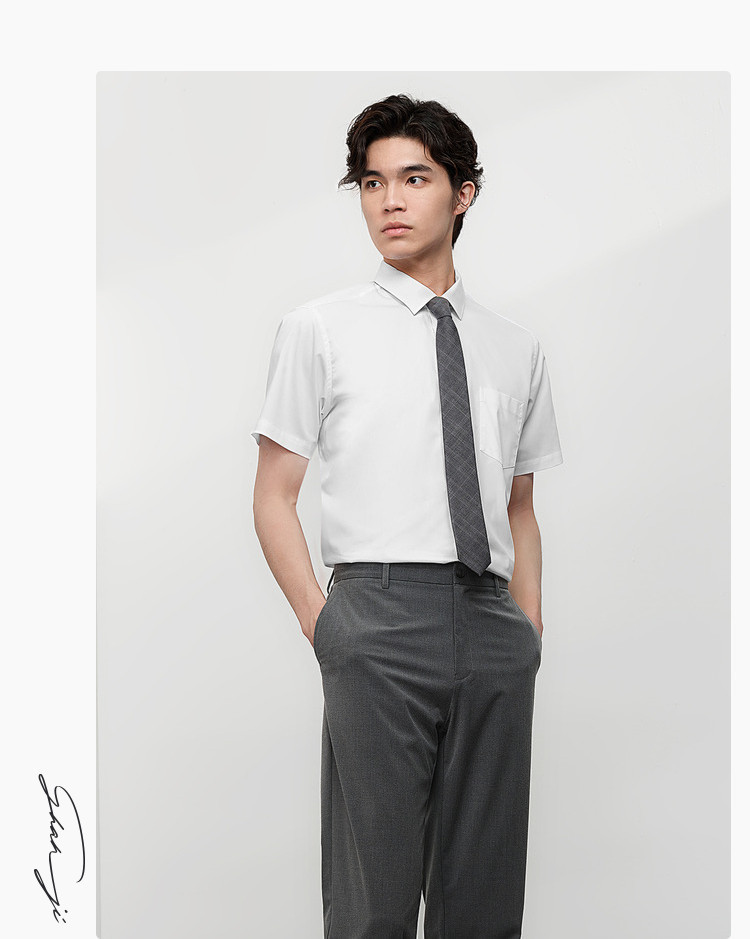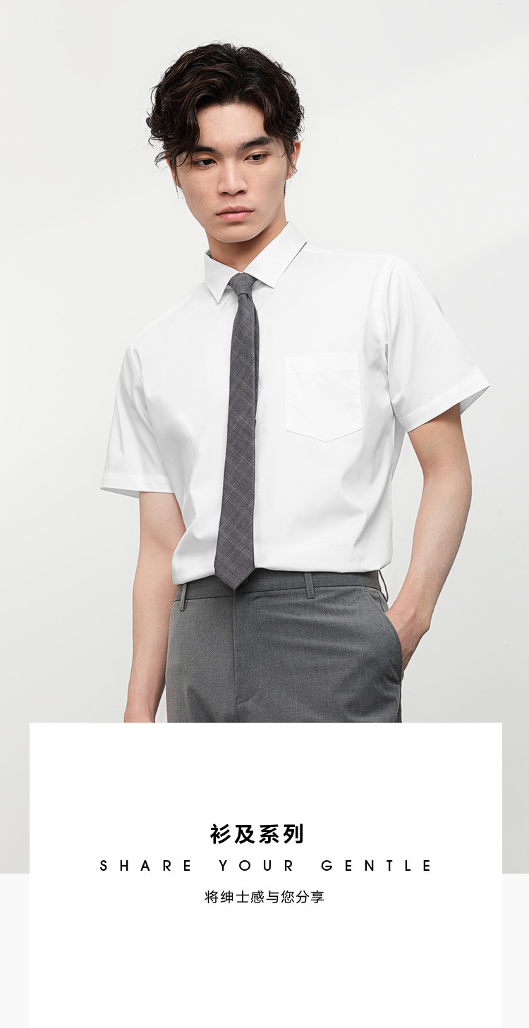 【轻商务衫及系列】夏季纯色商务绅士透气男士短袖衬衫 637960