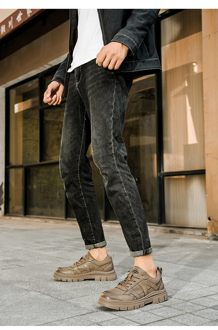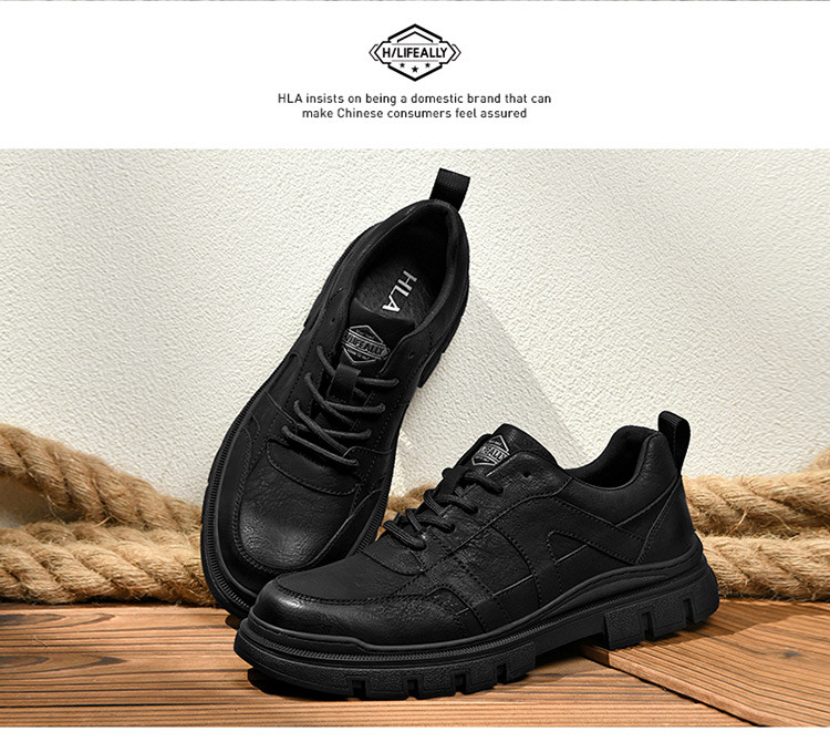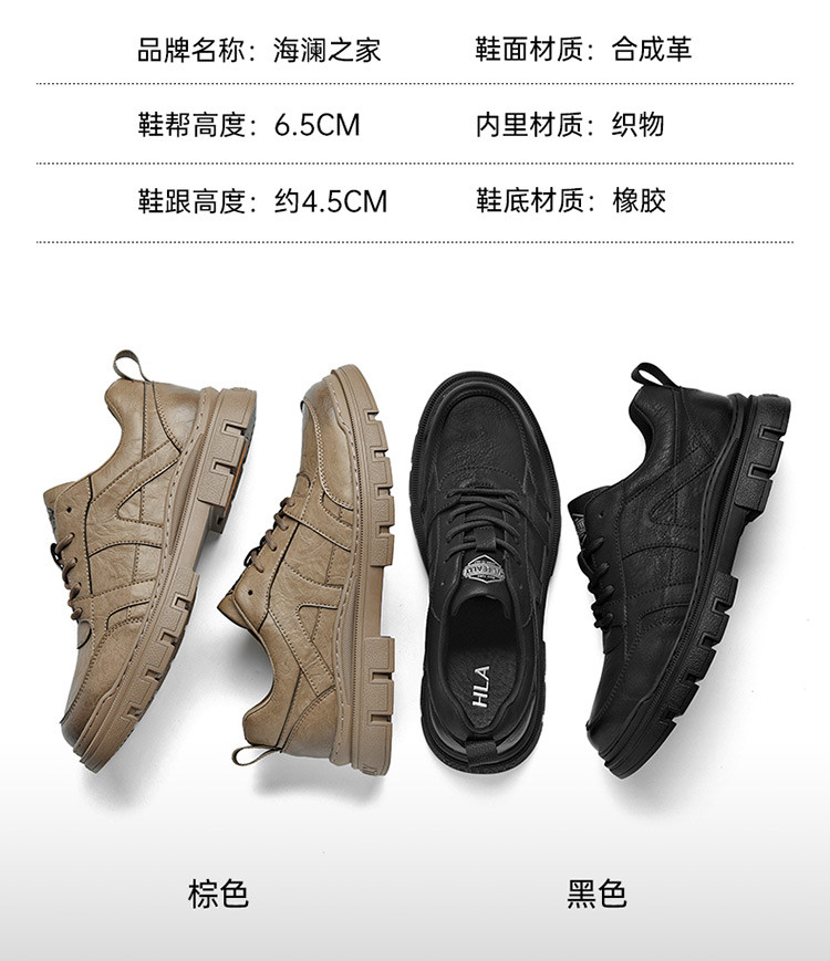 男士鞋子休闲鞋男休闲鞋复古绑带户外工装鞋休闲男鞋增高 081423