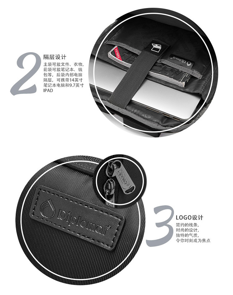 商品名称:Diplomat外交官时尚百搭潮款双肩背包DS-14039L 黑色