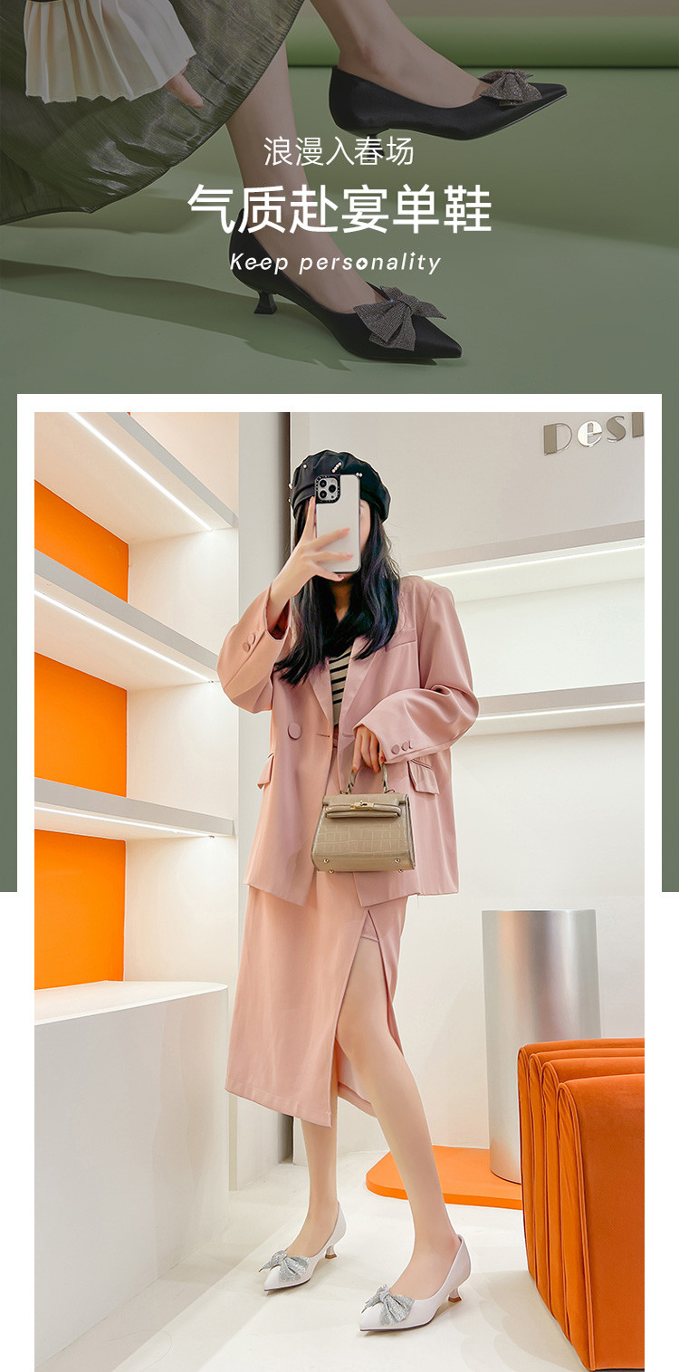 女士单鞋约会休闲时装鞋女单鞋通勤尖头女鞋女单鞋 244111