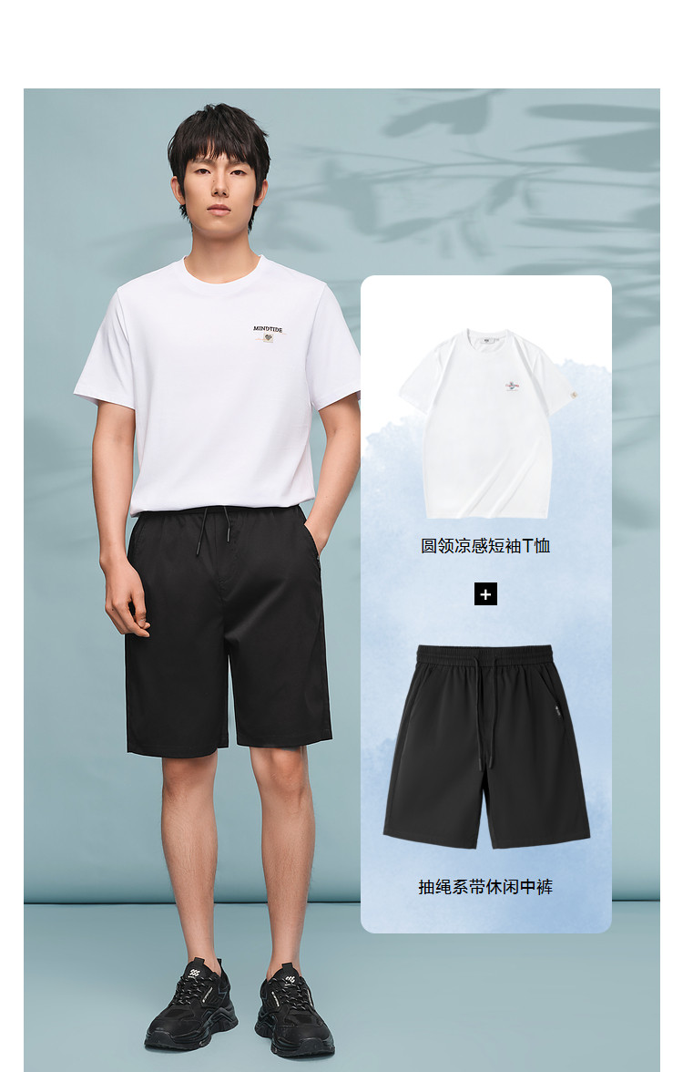商品名称:【滑爽挺括】夏季松紧腰系带时尚男士休闲中裤短裤 801800