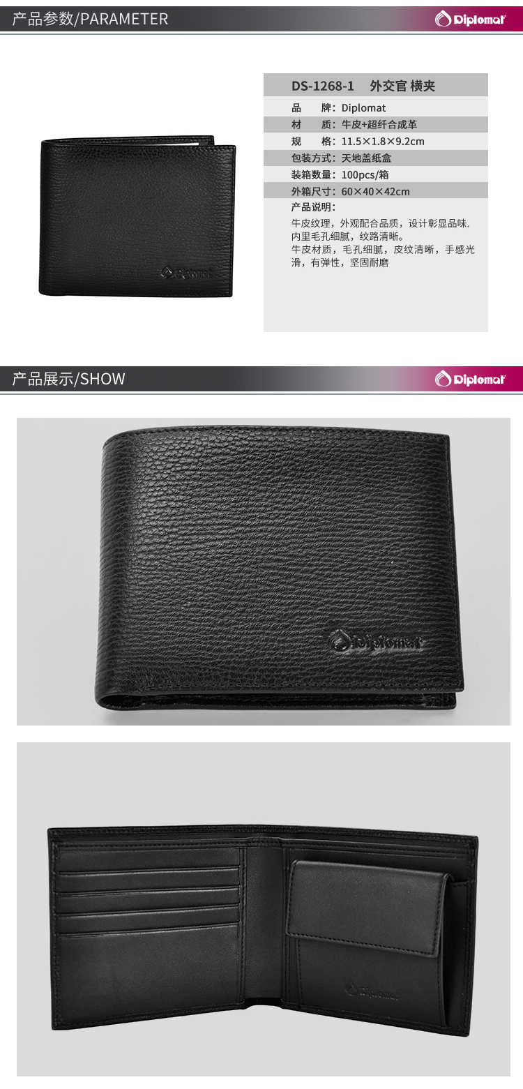 商品名称:Diplomat 外交官 横夹 DS-1268-1 黑色
