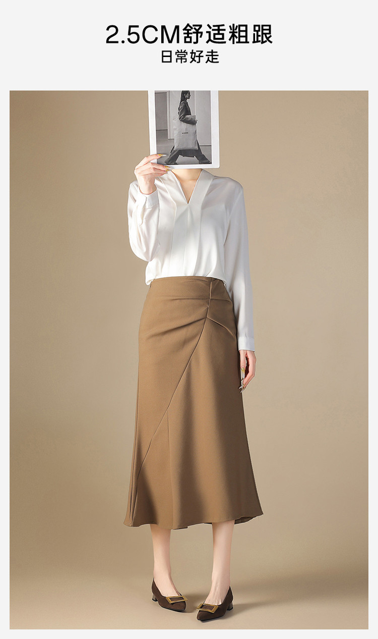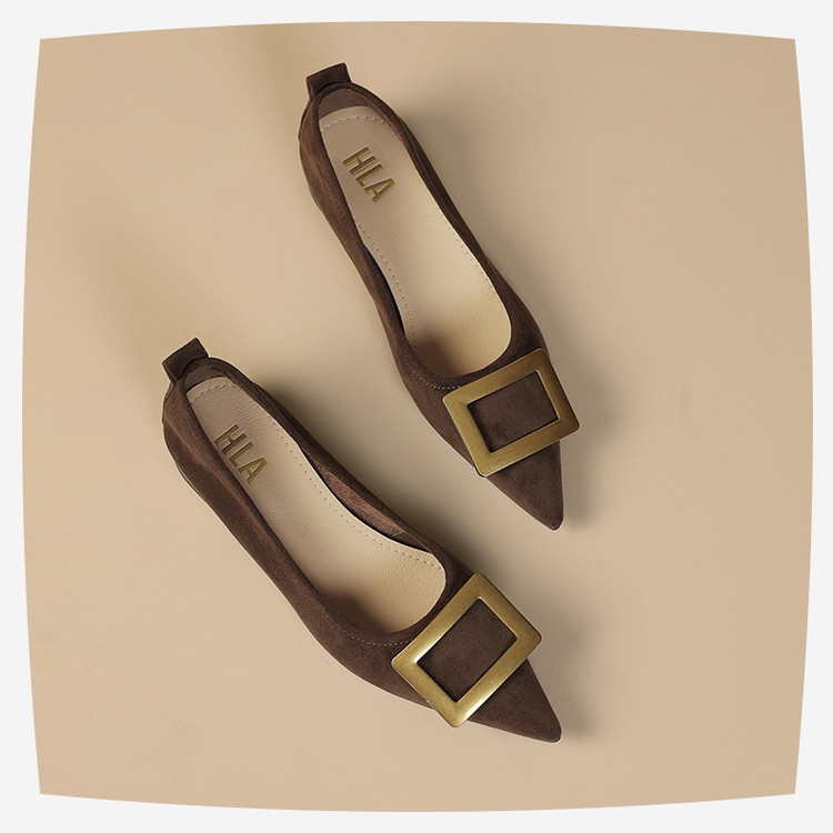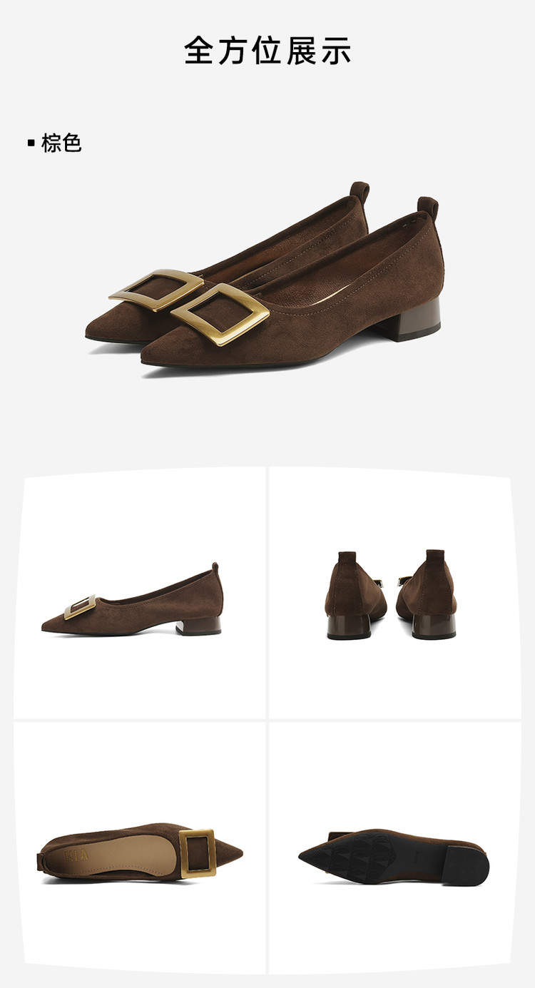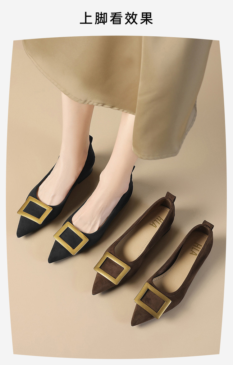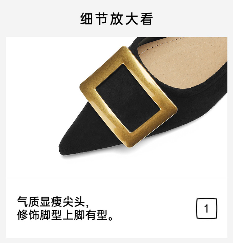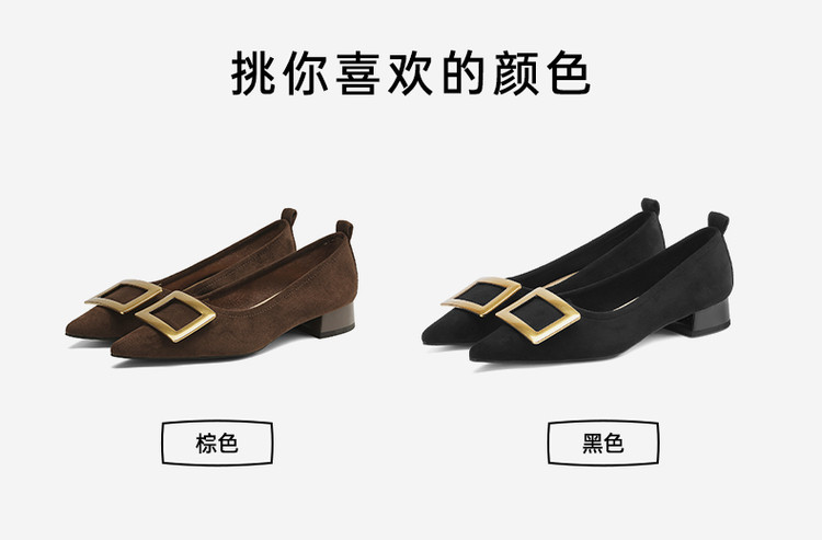 单鞋女商务职场通勤女士单鞋方扣尖头低跟时装女单鞋 383375