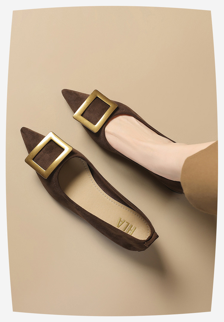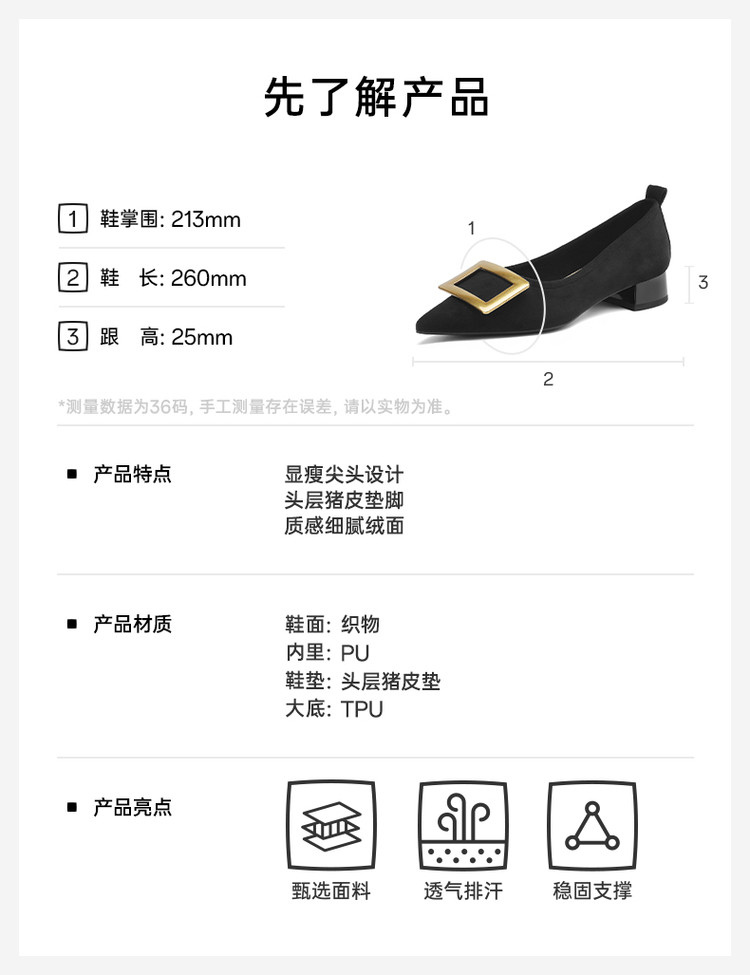 商品名称:单鞋女商务职场通勤女士单鞋方扣尖头低跟时装女单鞋 383375