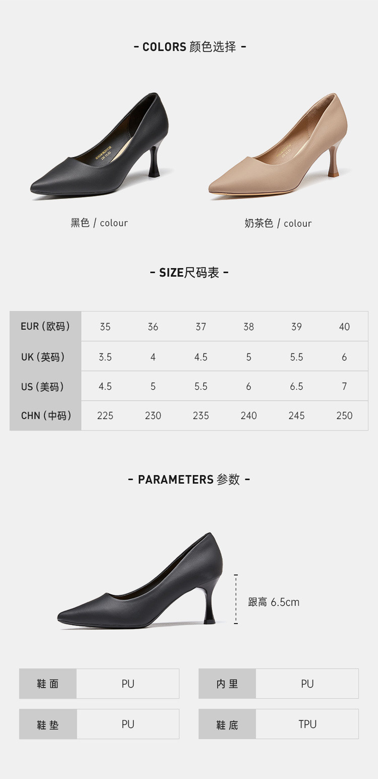 商品名称:高跟鞋女时尚法式尖头女鞋通勤职场单鞋高跟单鞋 231823
