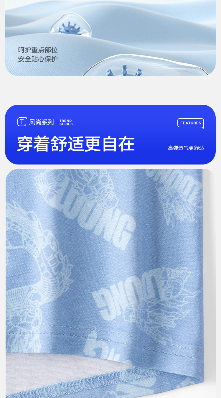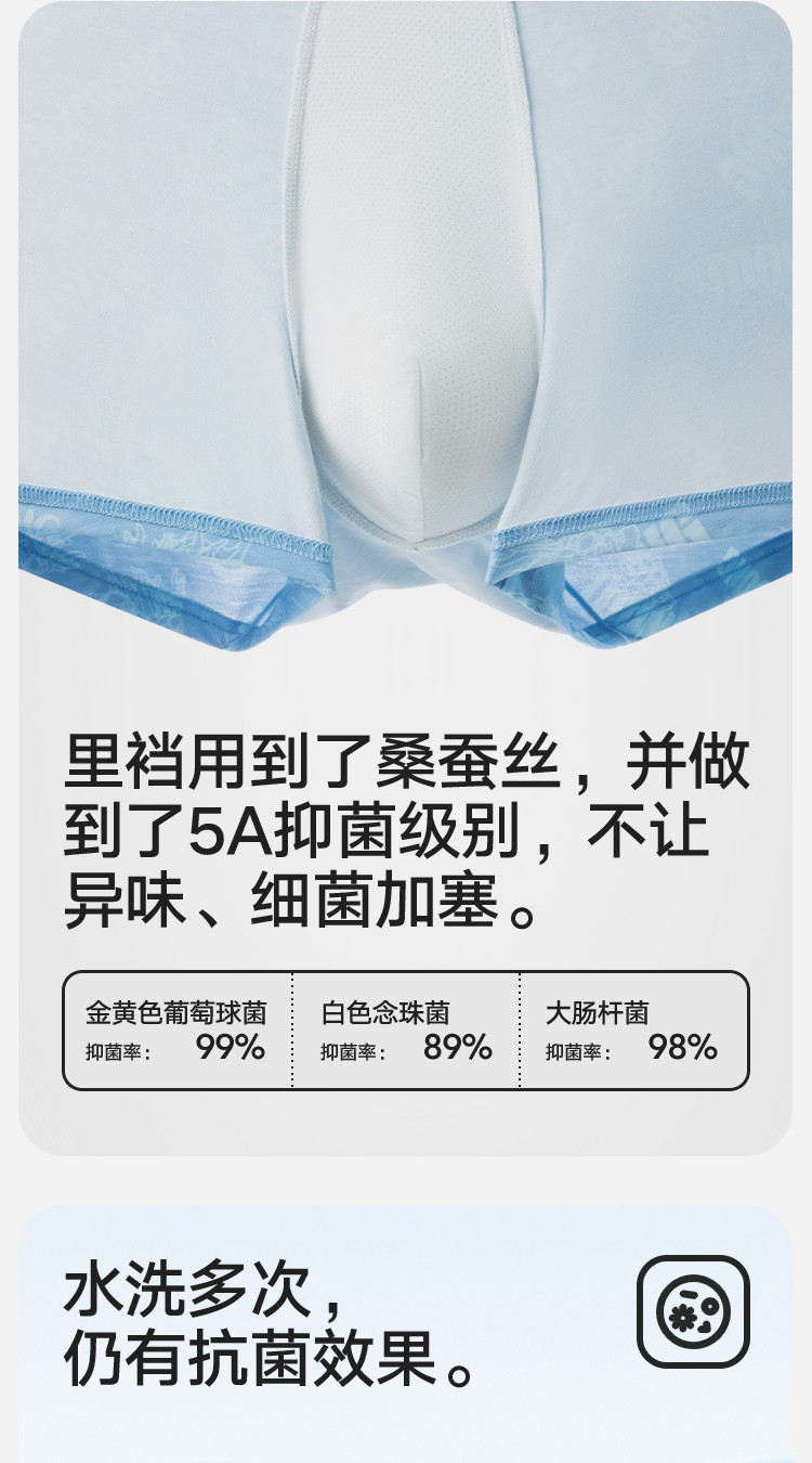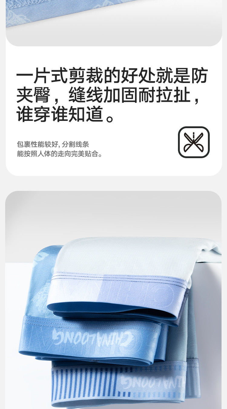 商品名称:【5A抑菌 一片式剪裁】3条装男士内裤印花裸感透气平角短裤男 710234