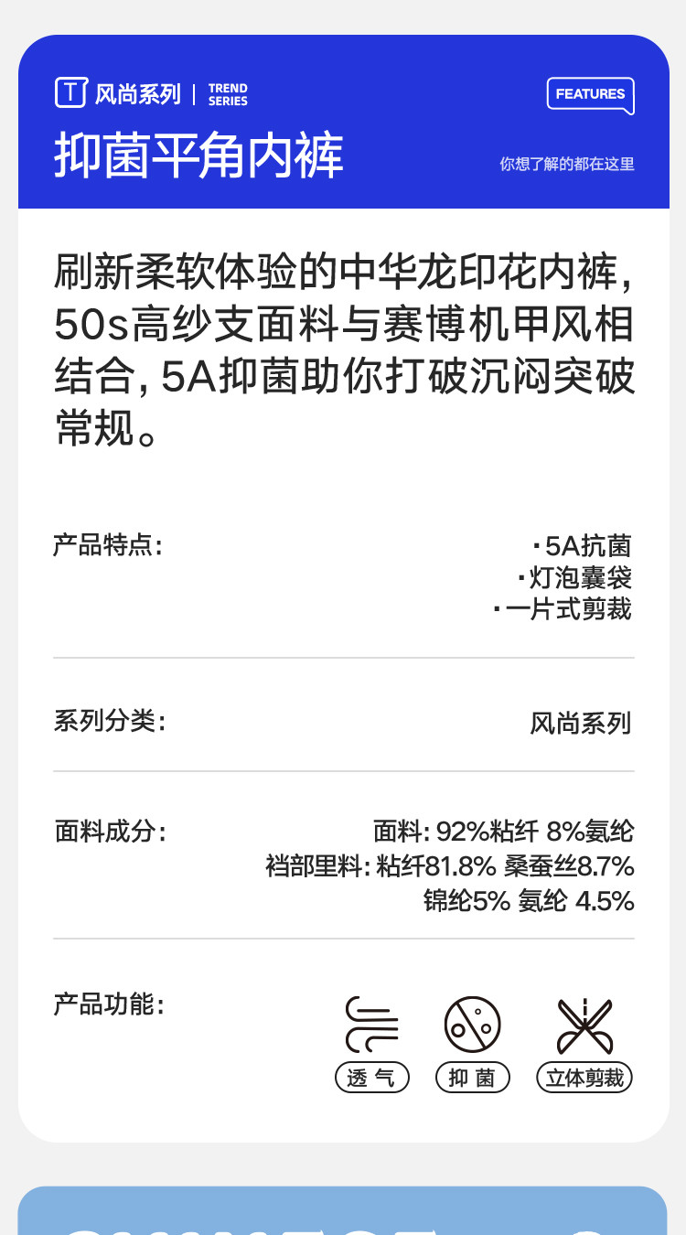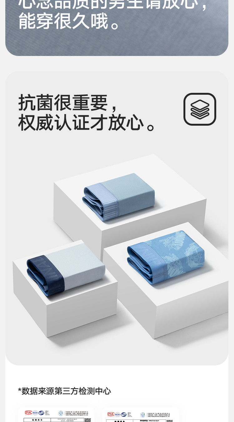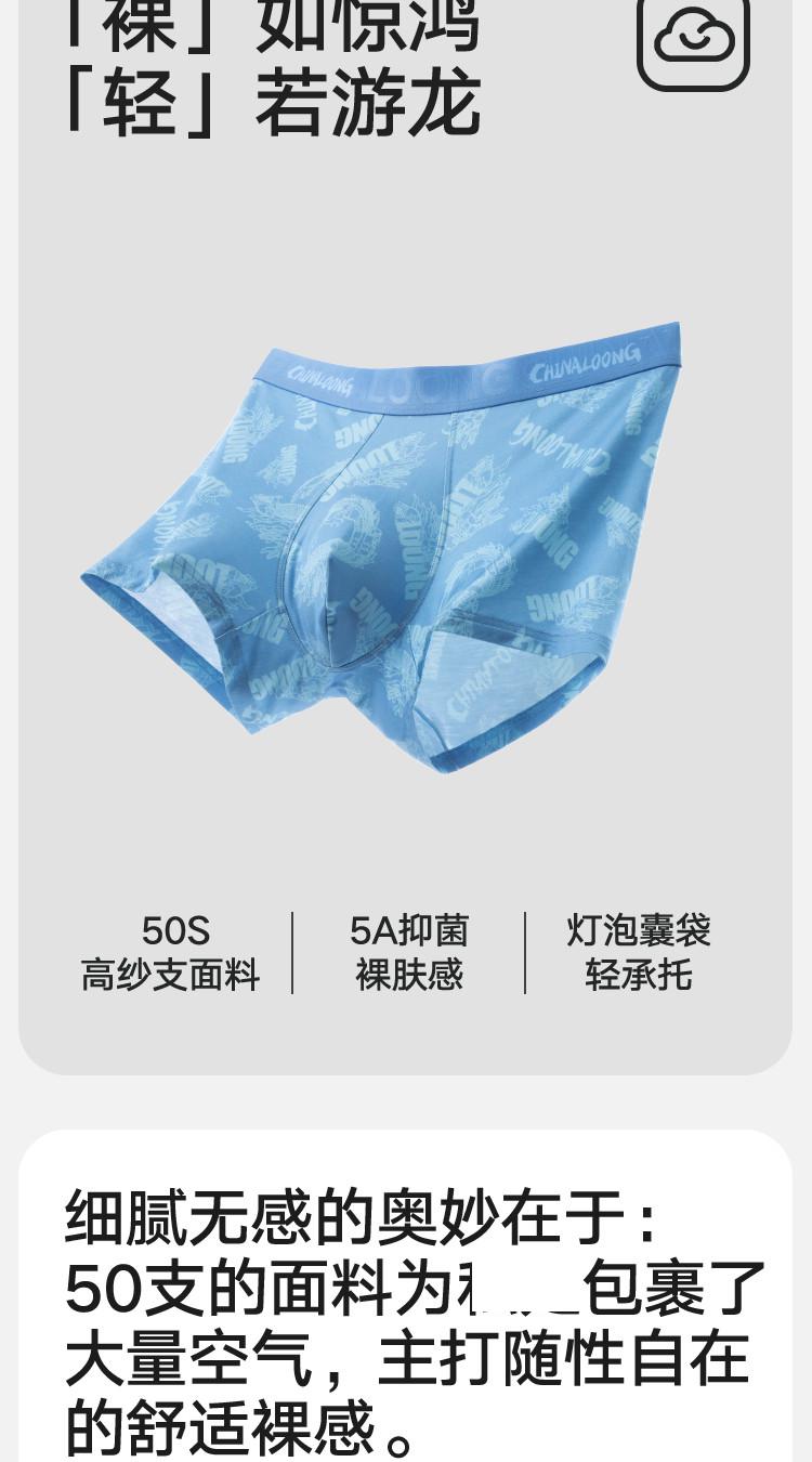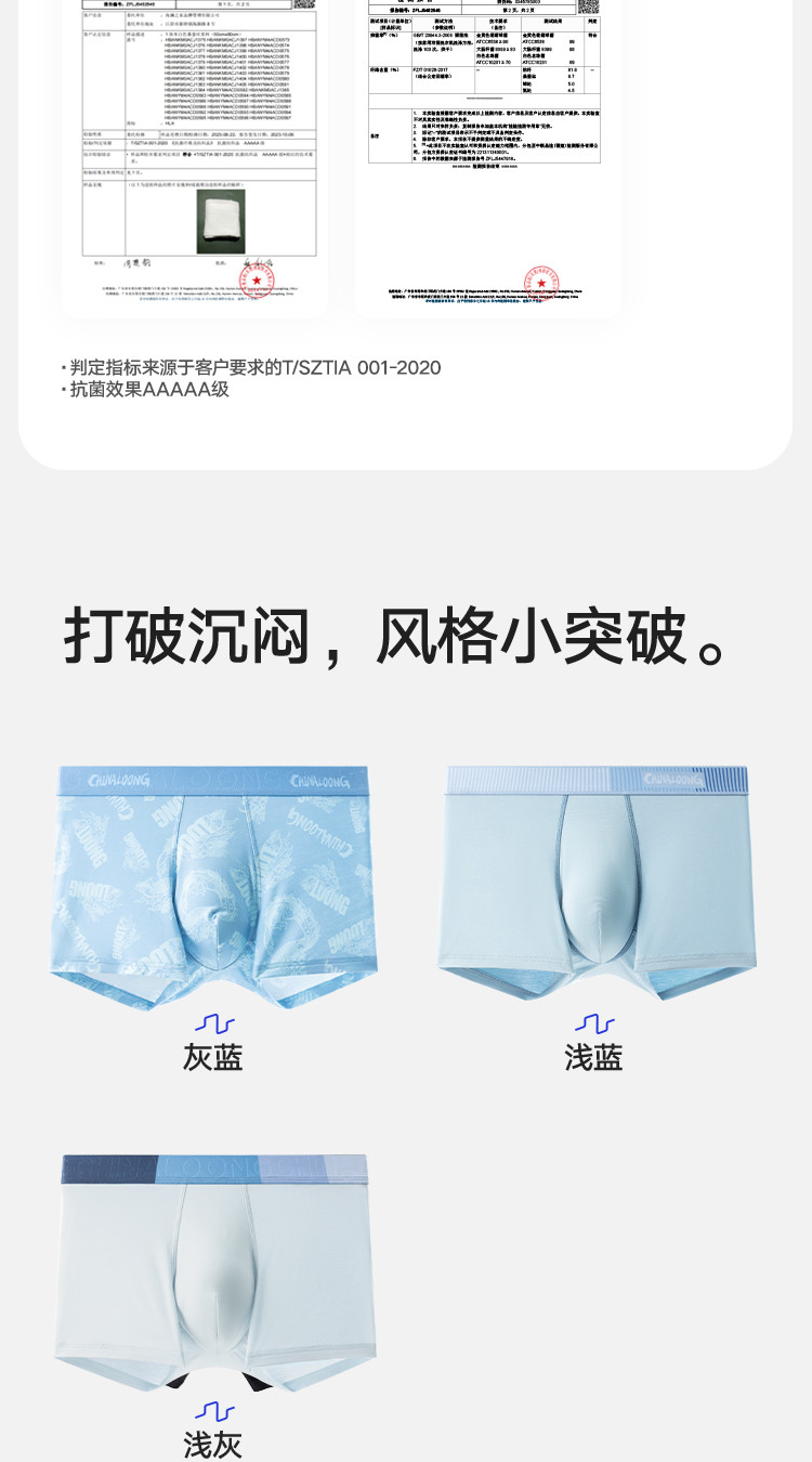 商品名称:【5A抑菌 一片式剪裁】3条装男士内裤印花裸感透气平角短裤男 710234