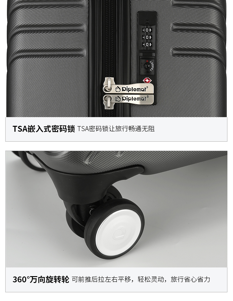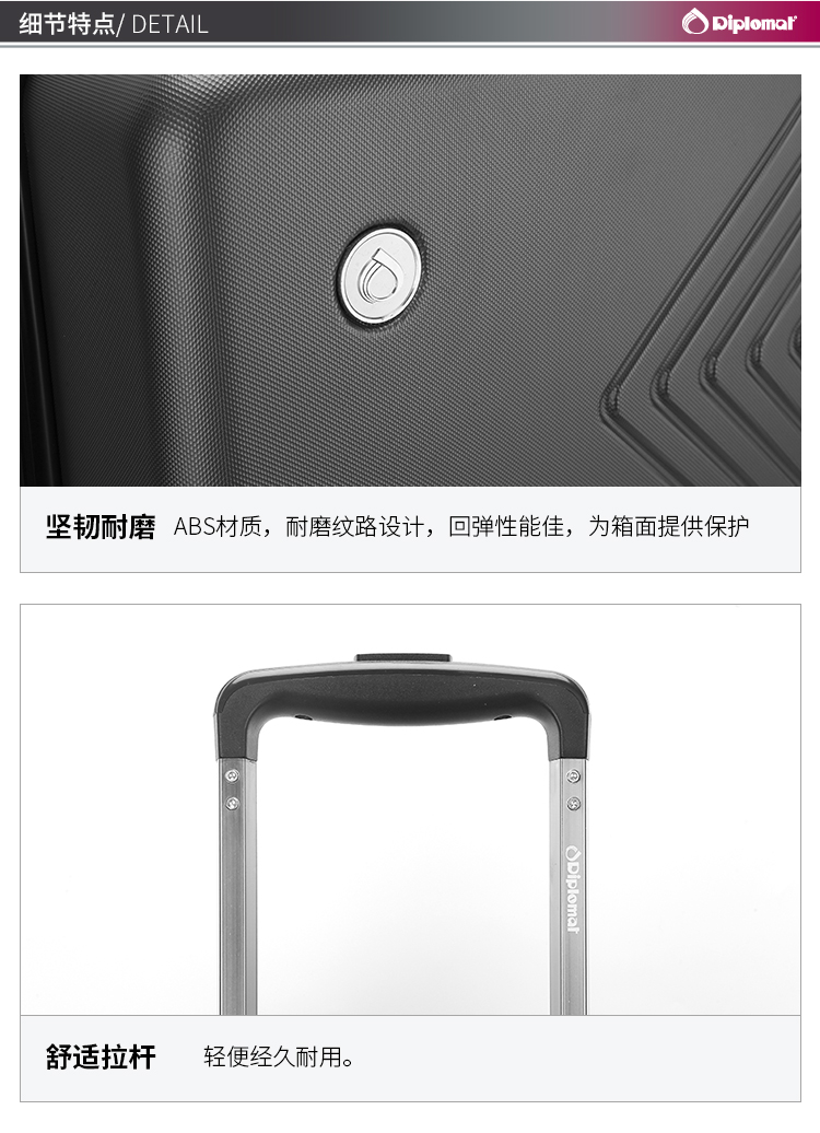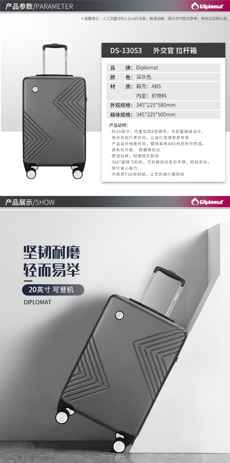商品名称:Diplomat 外交官休闲时尚简约耐磨拉杆箱DS-13053 灰色 20英寸