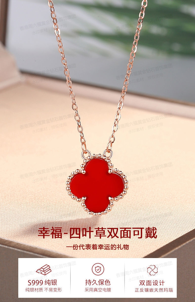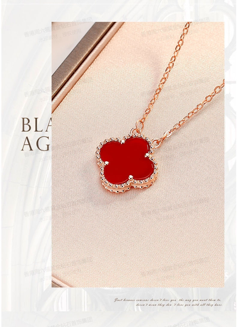 香港周六福钻石首饰VC四叶草项链材质18KGP+ 红玉髓链长约450mm