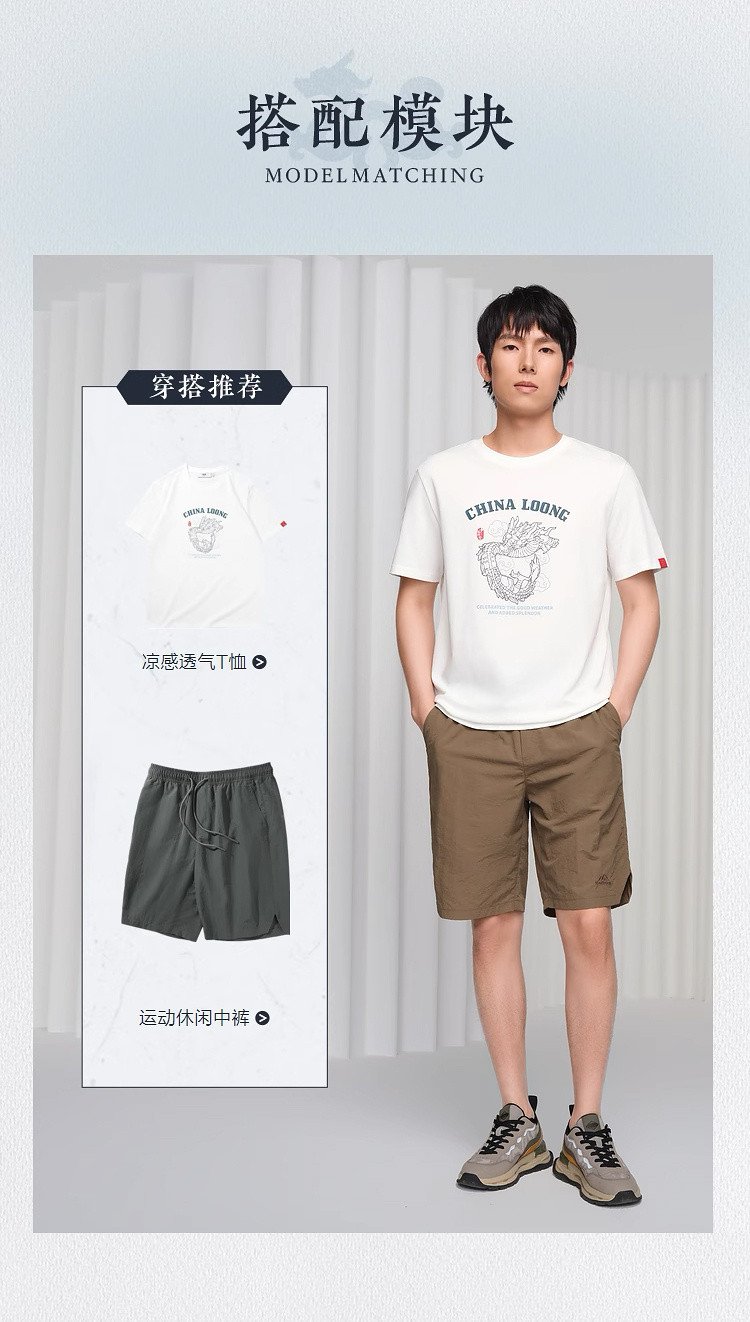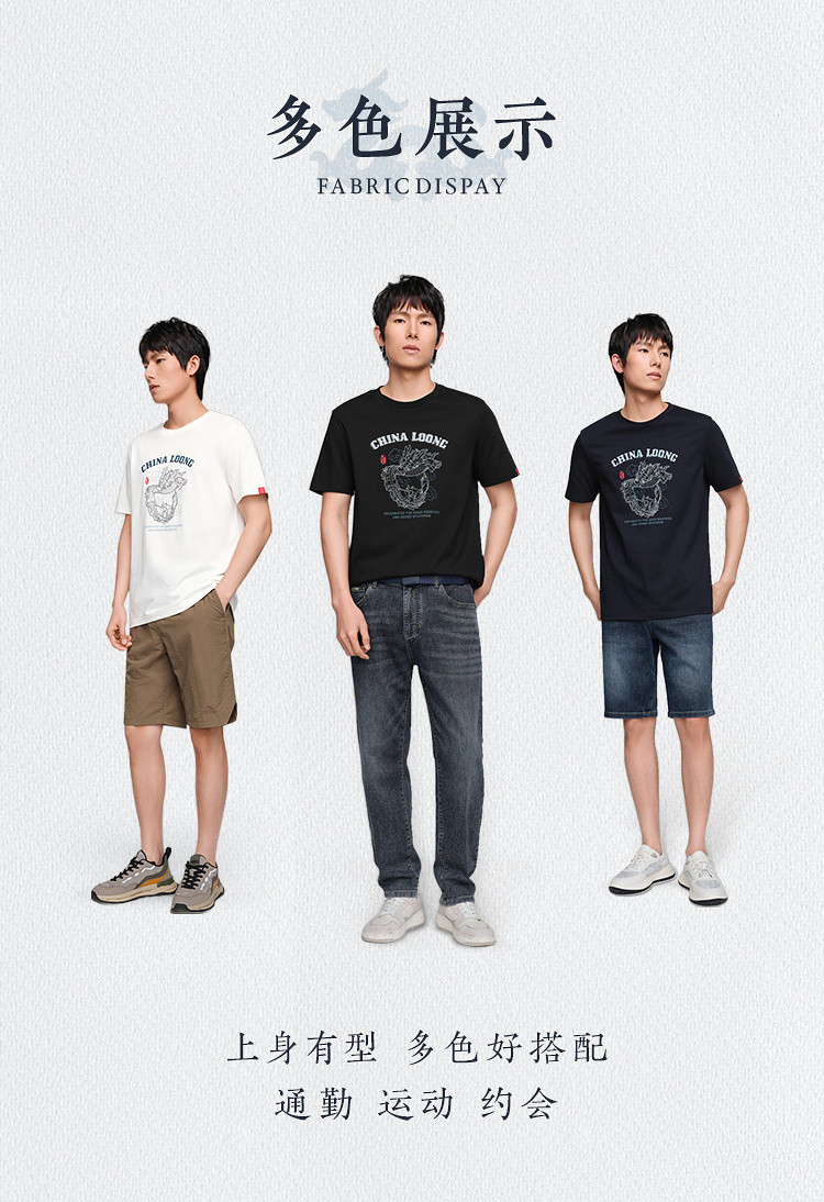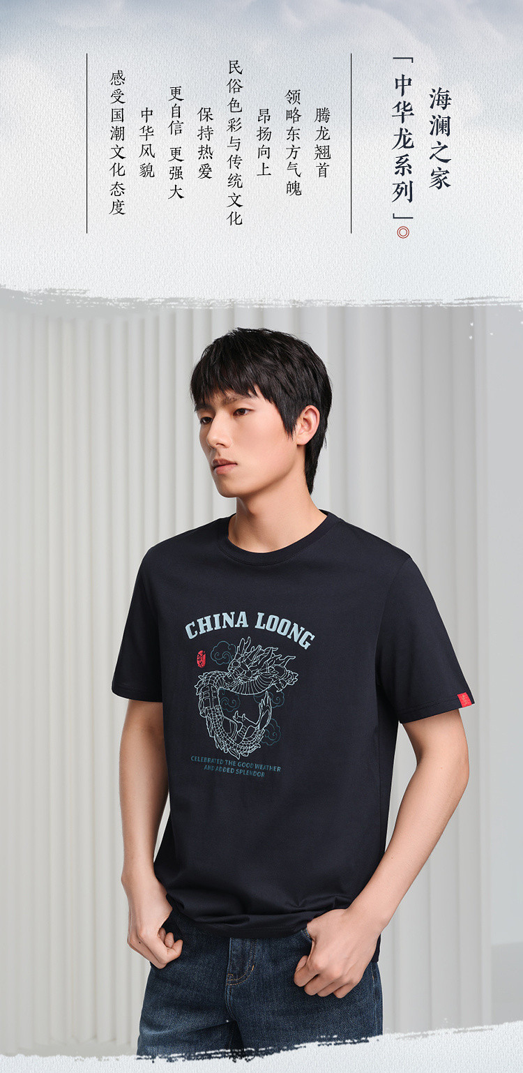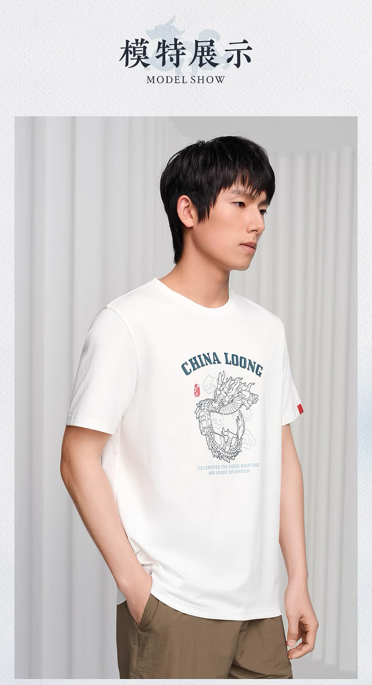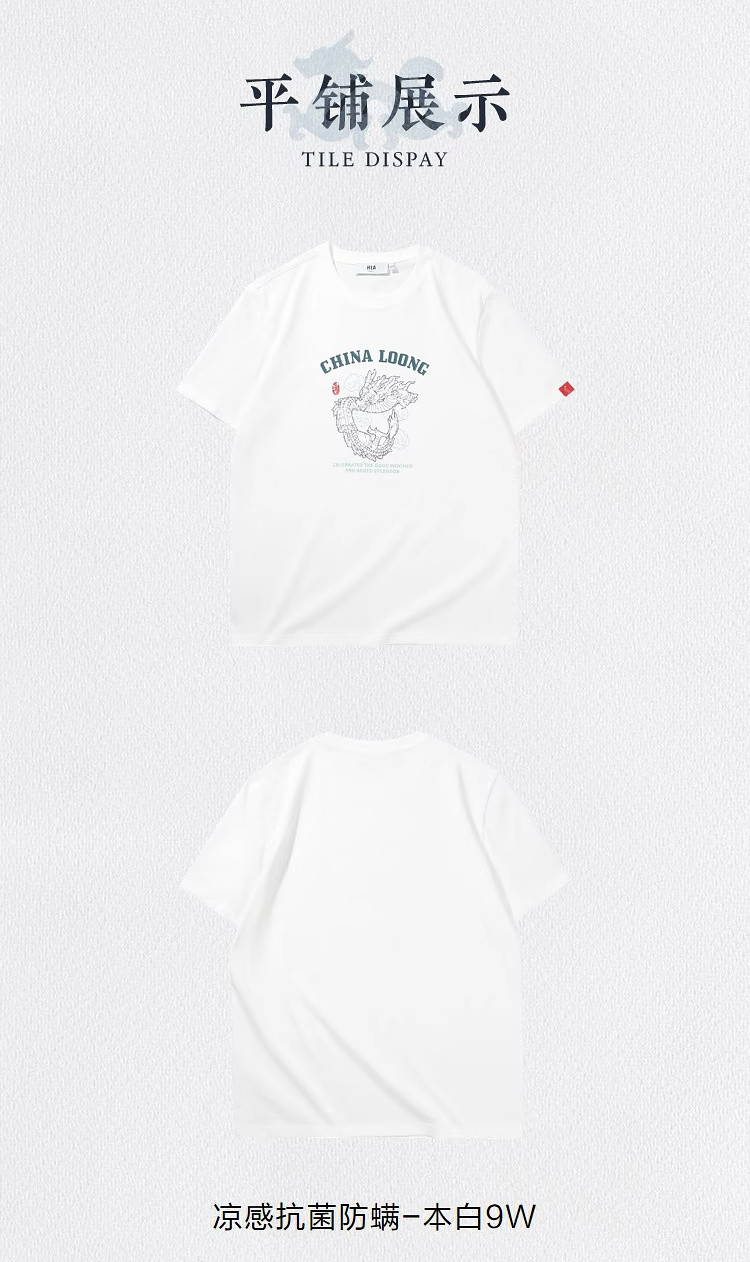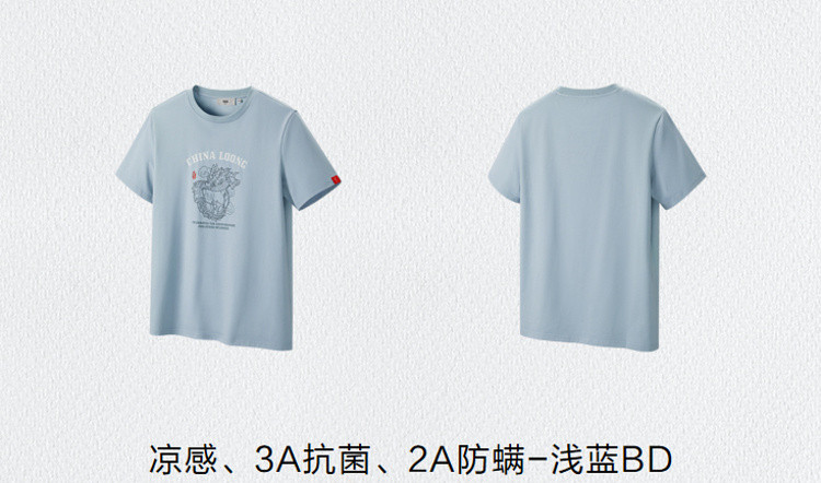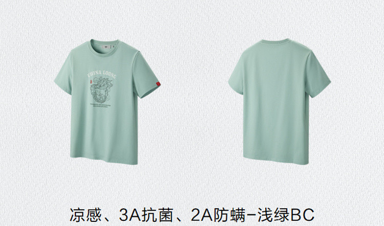 商品名称:【中华龙】夏季纯色圆领凉感透气抗菌防螨男士短袖T恤 950344