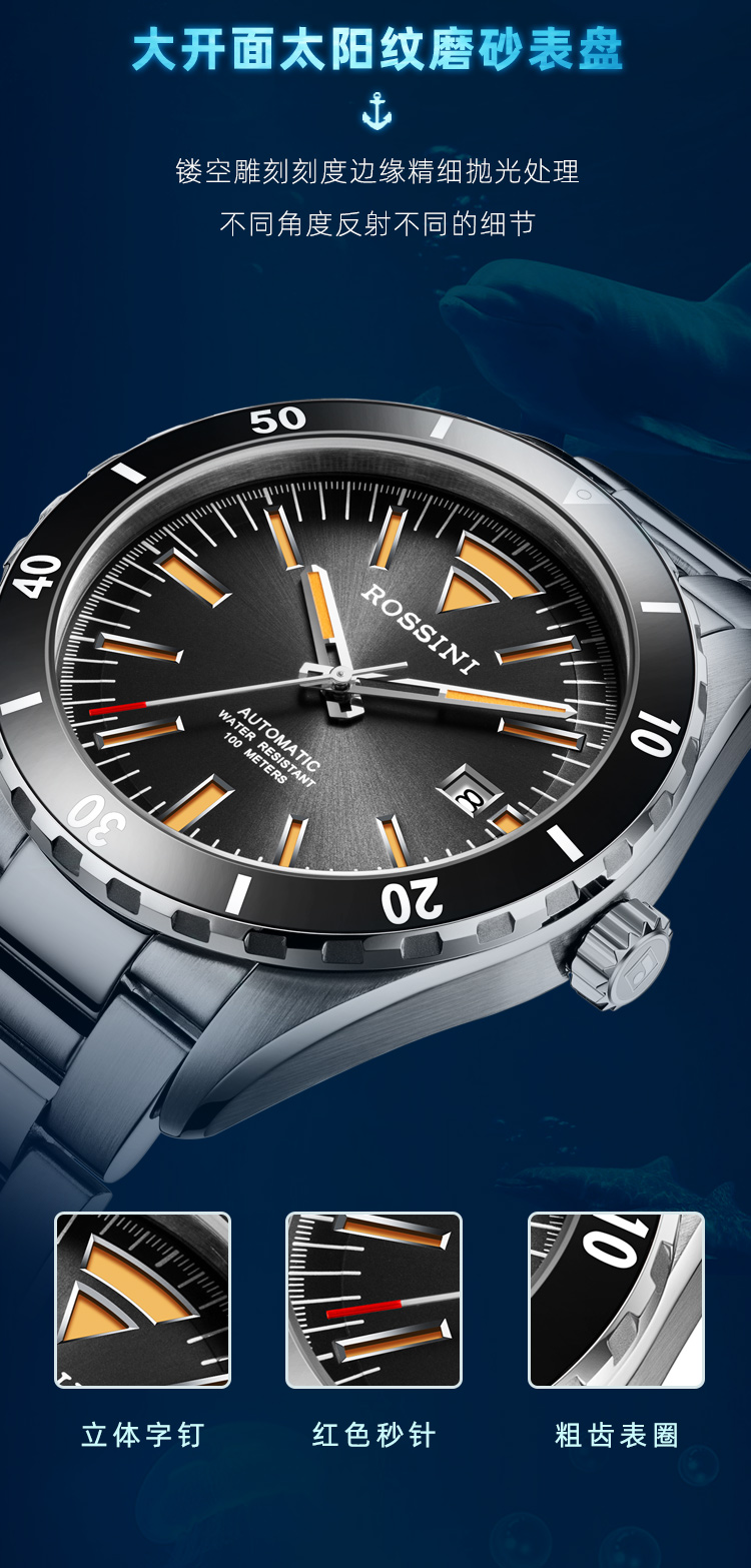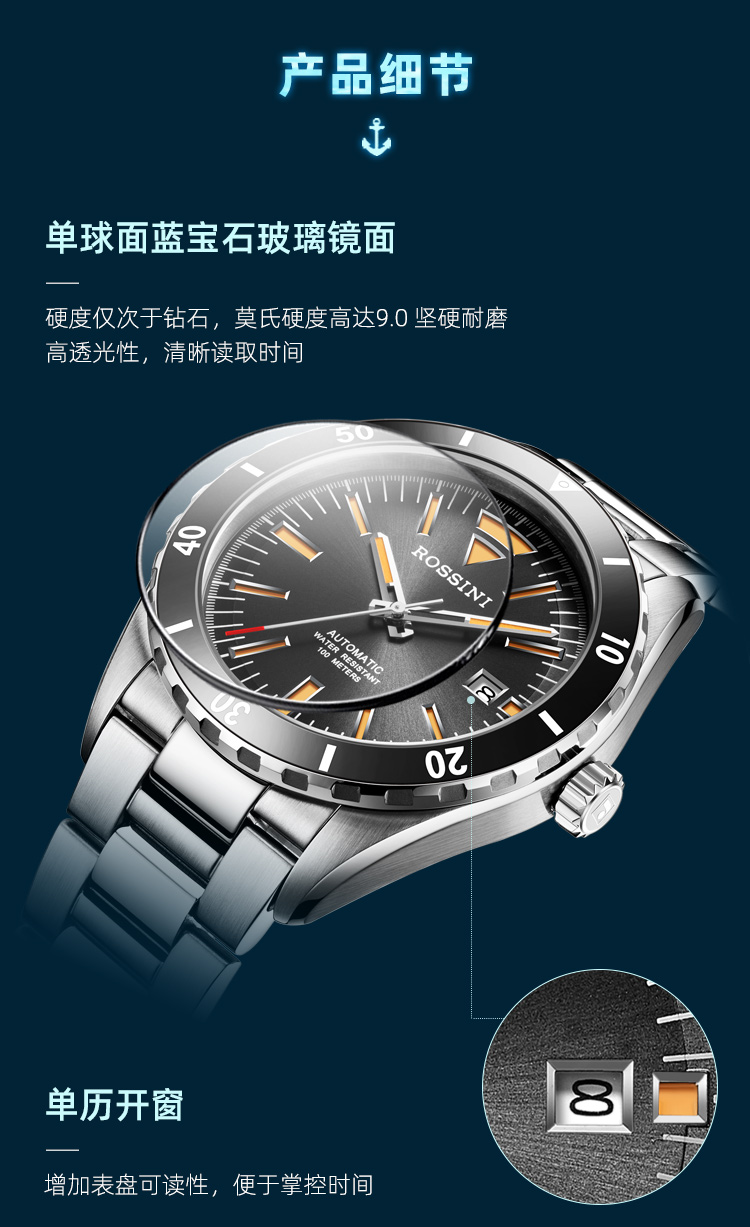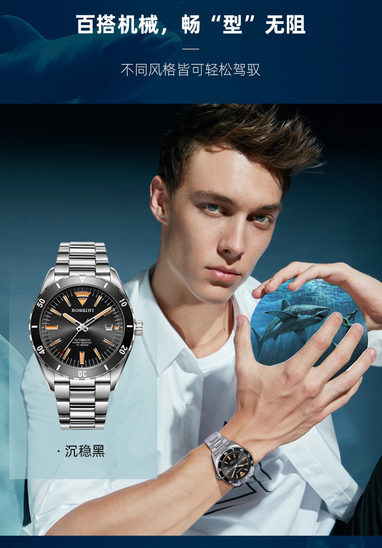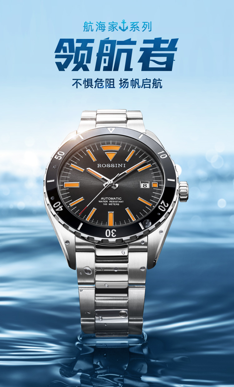 商品名称:Rossini罗西尼 航海家系列 机械手表沉稳黑男表50069T04B