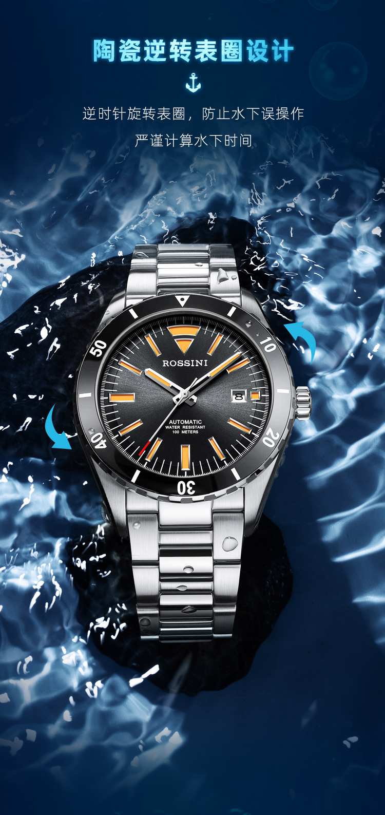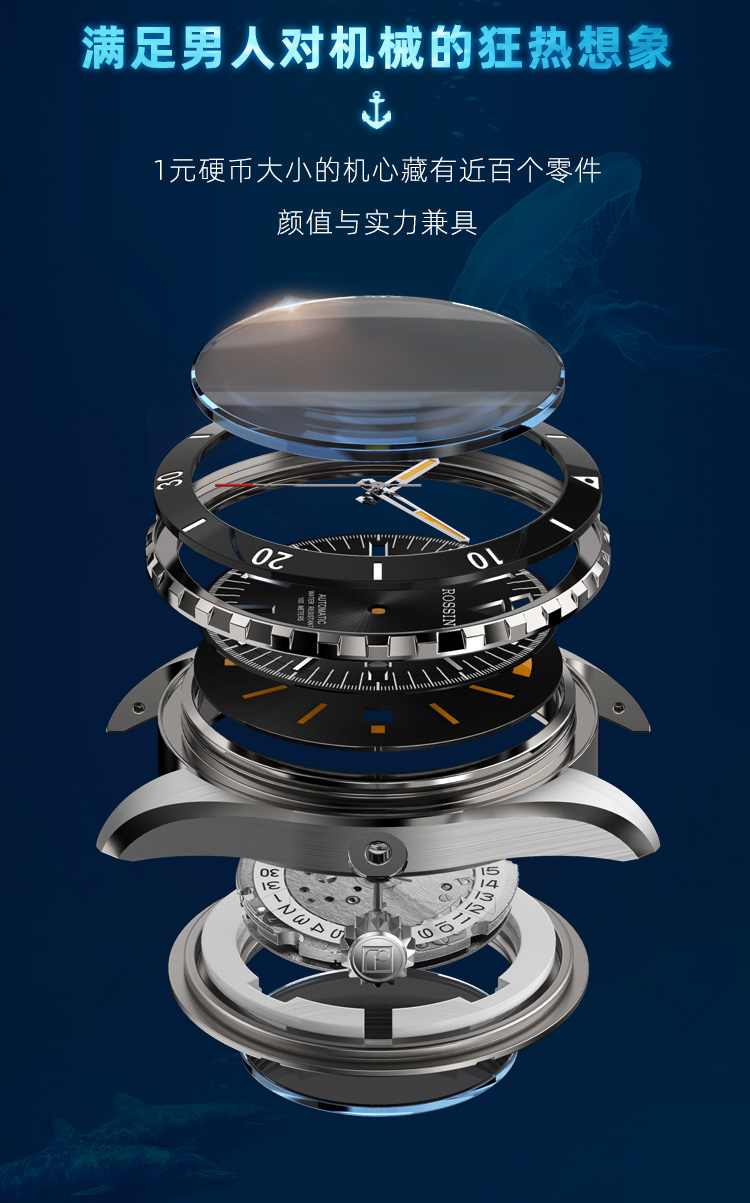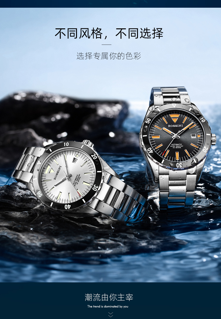 商品名称:Rossini罗西尼 航海家系列 机械手表沉稳黑男表50069T04B