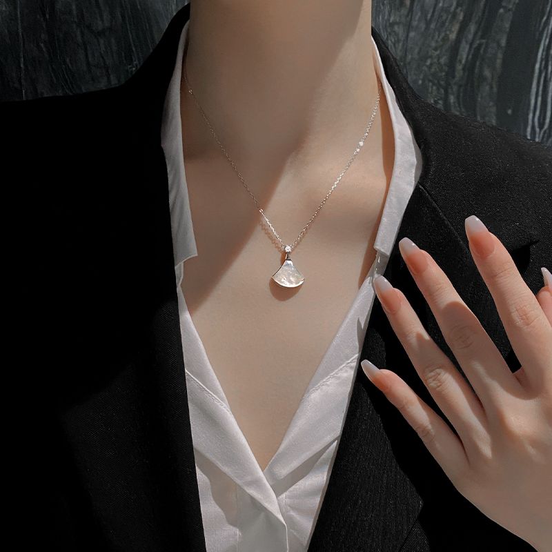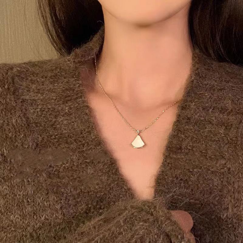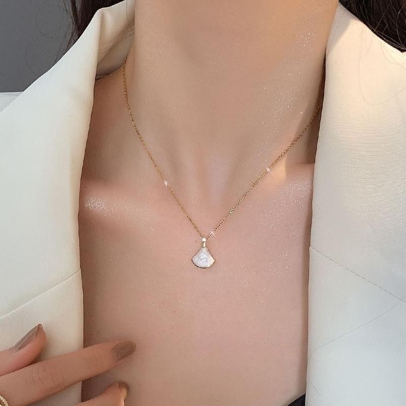 奥贝米小裙子项链贝壳吊坠轻奢百搭锁骨链钛钢+白贝