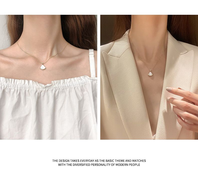 商品名称:奥贝米小裙子项链贝壳吊坠轻奢百搭锁骨链钛钢+白贝