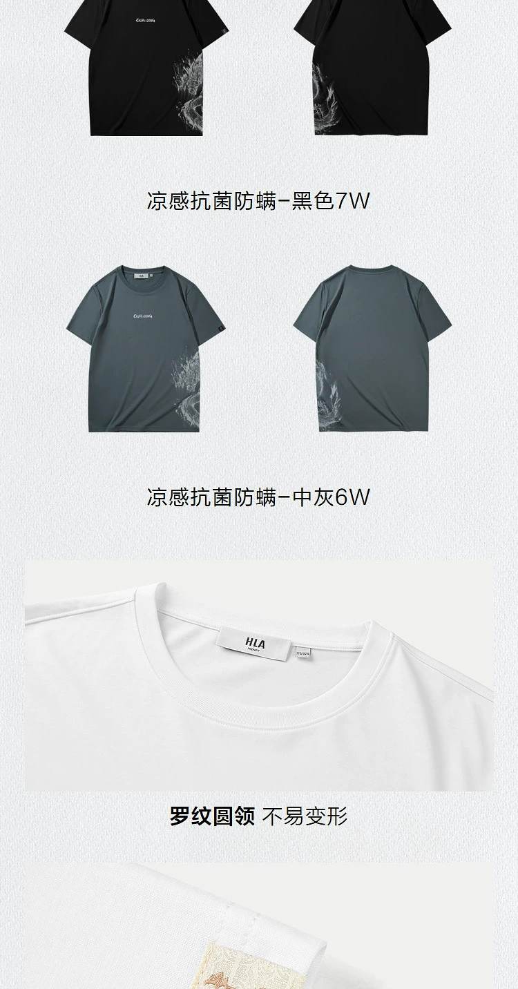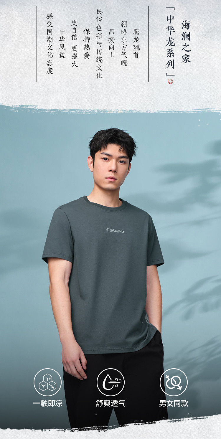商品名称:【中华龙】夏季纯色凉感抗菌防螨圆领透气男士短袖T恤 701960