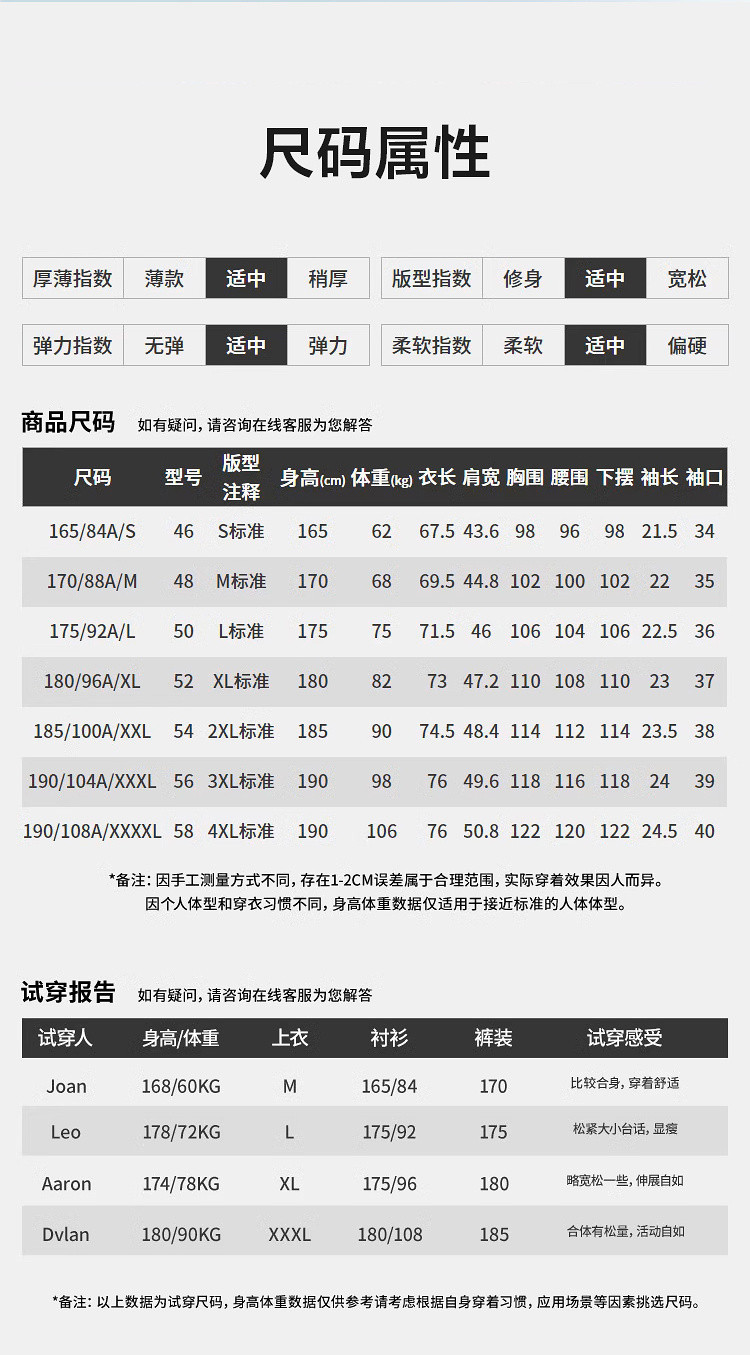4XL(推荐99~106kg) 76 50.8 120 24.5 122 122 190/108A