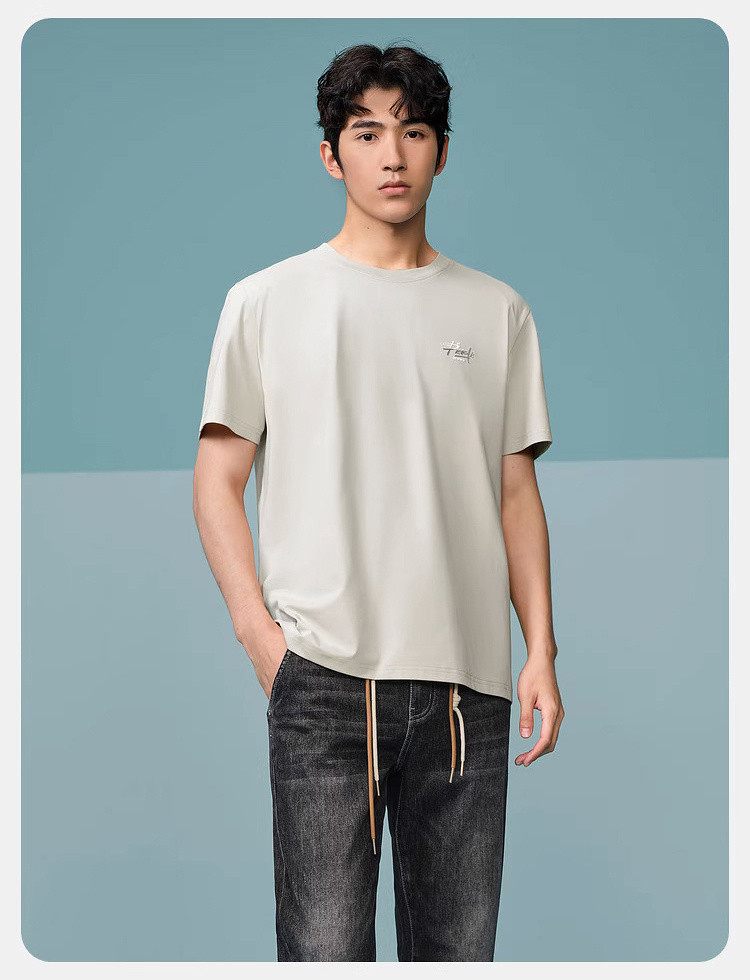 【凉感抗菌防螨】夏季纯色新街潮索罗娜透气男士短袖T恤 720520