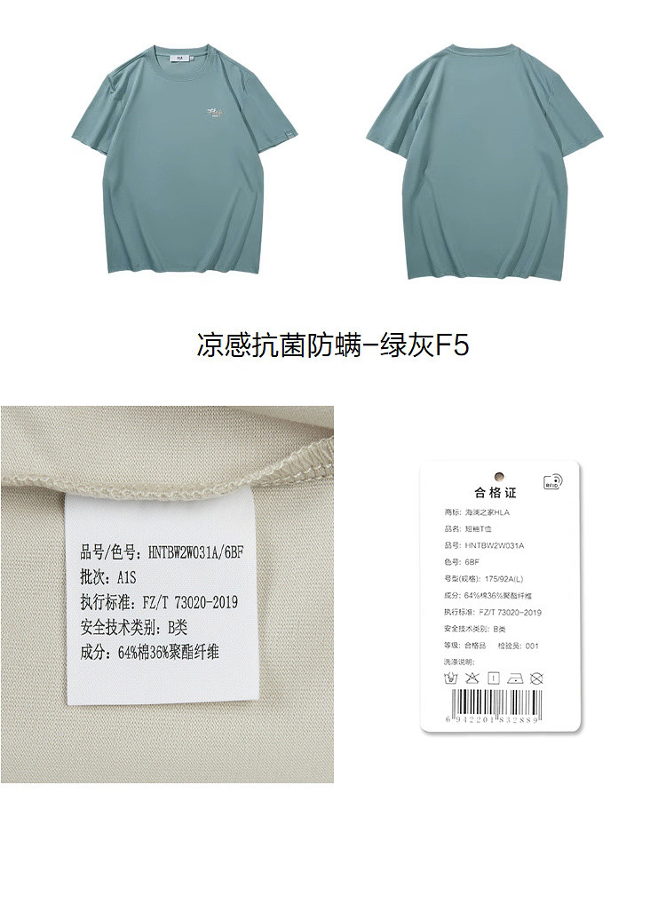 商品名称:【凉感抗菌防螨】夏季纯色新街潮索罗娜透气男士短袖T恤 087304