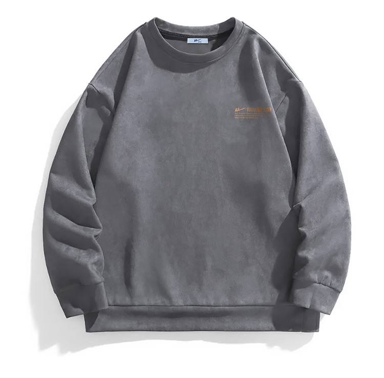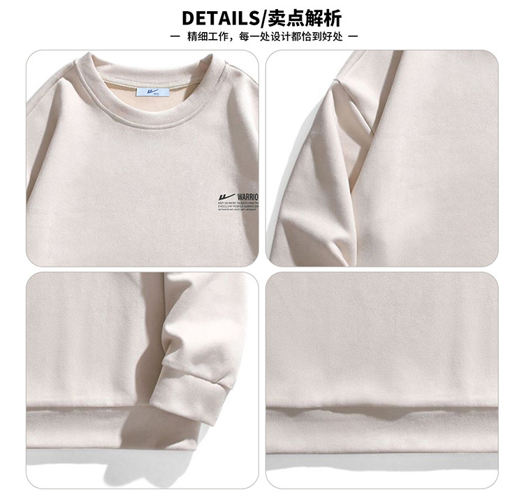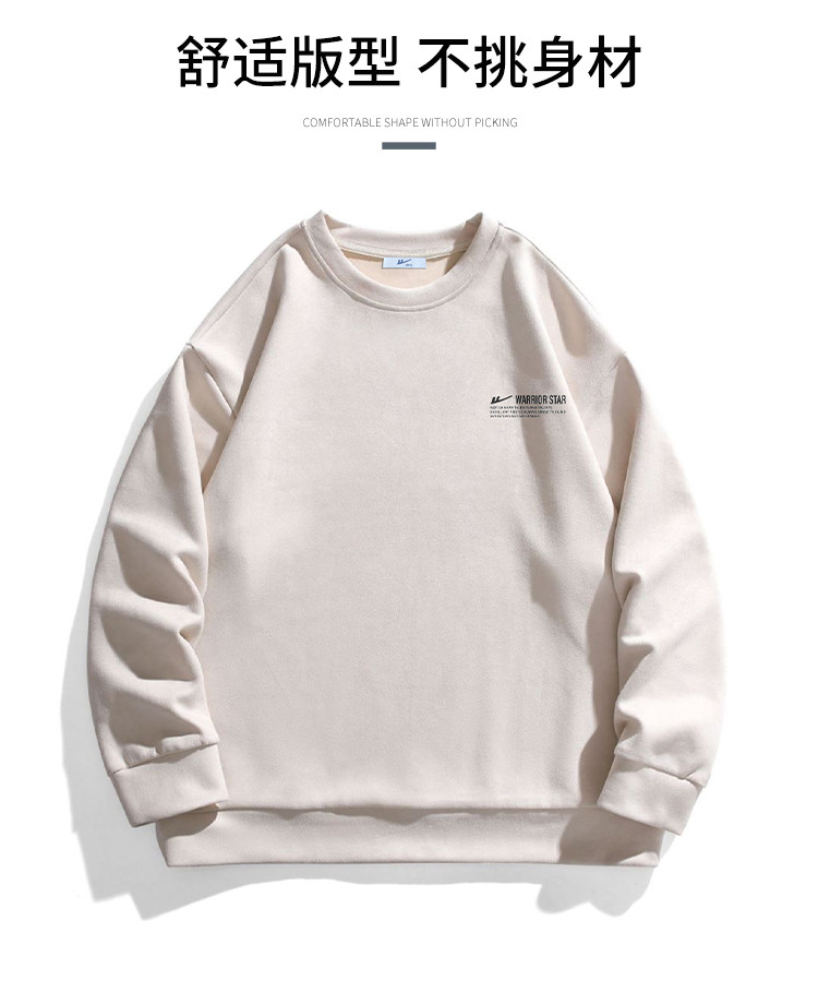 圆领卫衣男式仿麂皮绒宽松休闲运动套头T恤春季印花重磅宽松上衣 338643