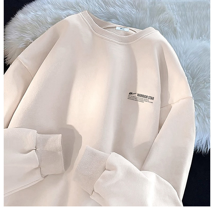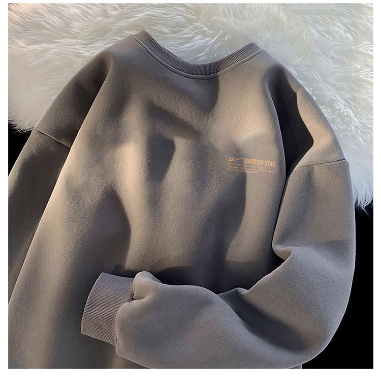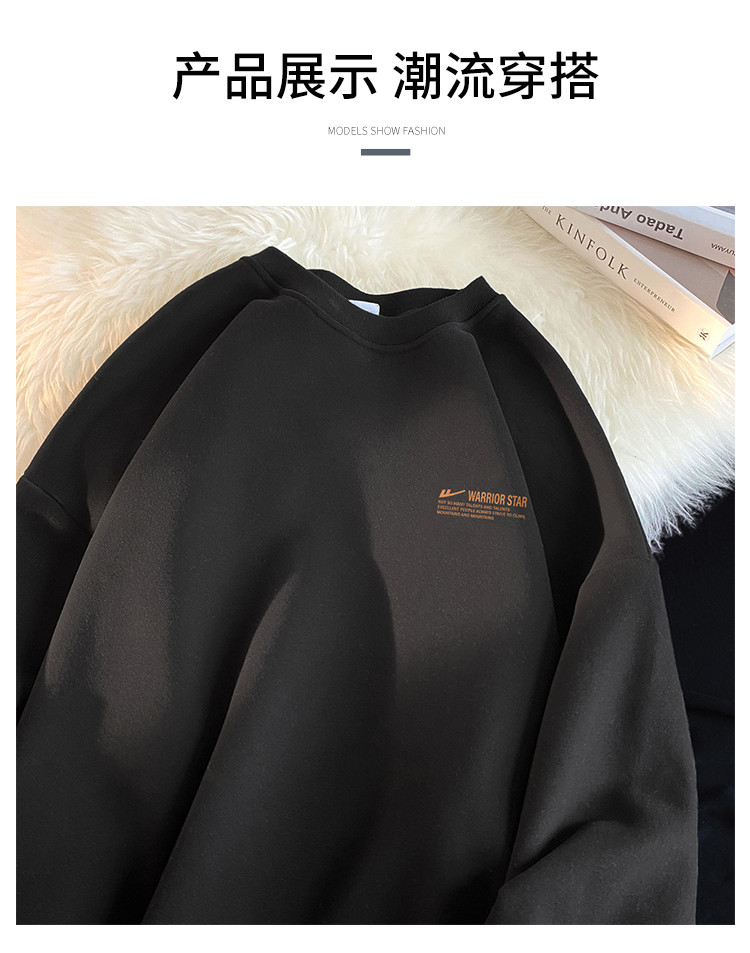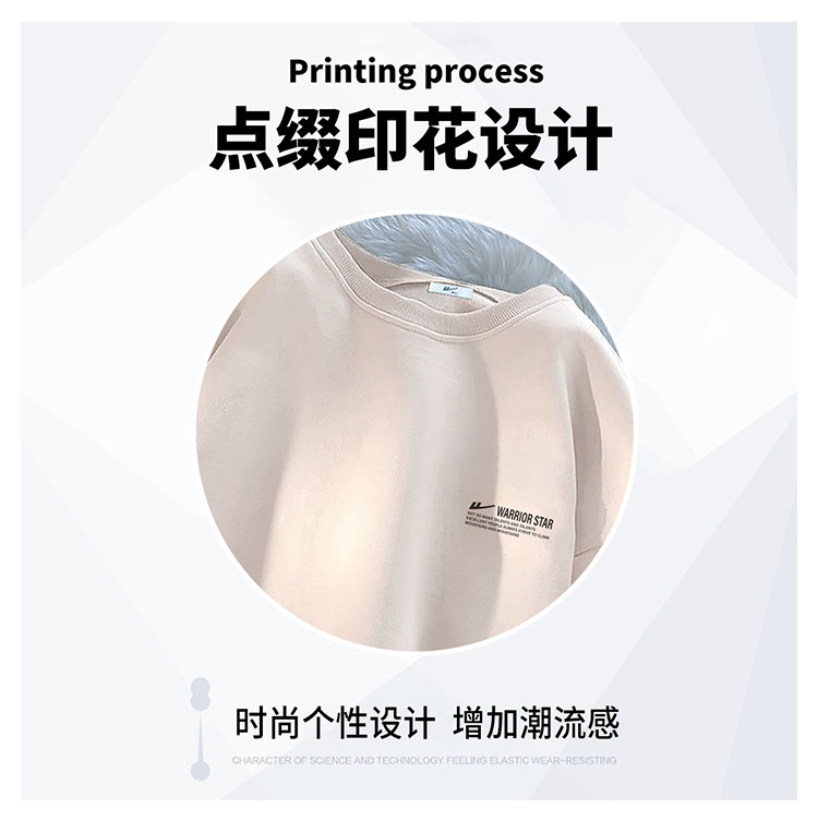 商品名称:圆领卫衣男式仿麂皮绒宽松休闲运动套头T恤春季印花重磅宽松上衣 338643