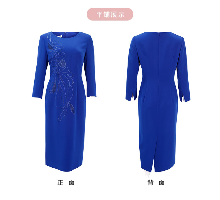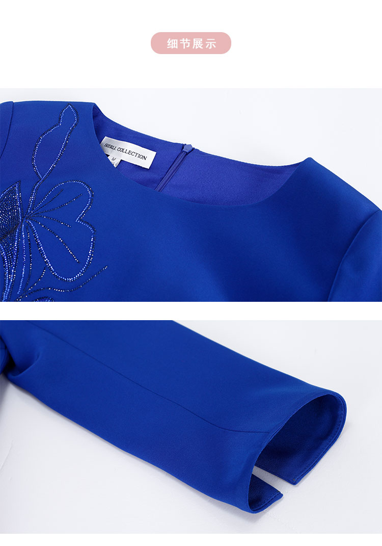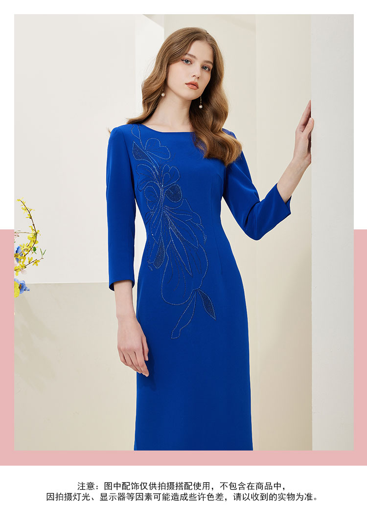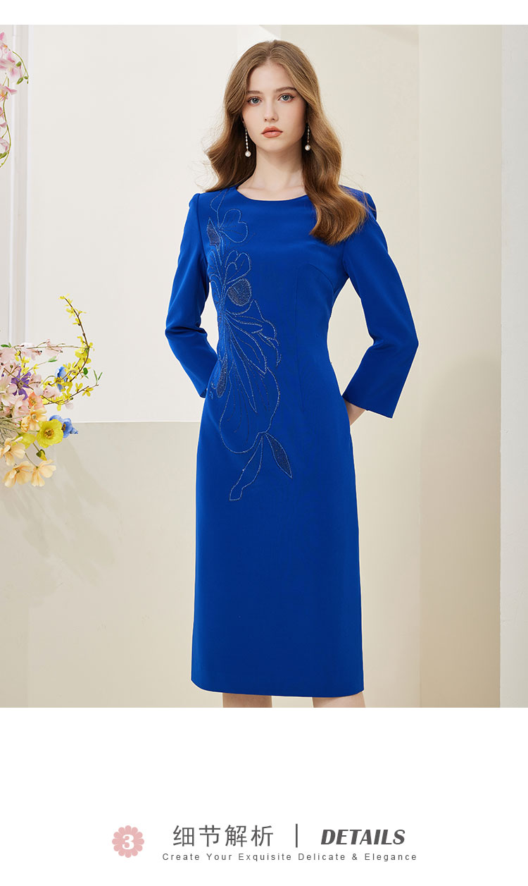 商品名称:[商场同款]春季醋酸烫钻蝴蝶花收腰显瘦圆领长袖连衣裙 566815