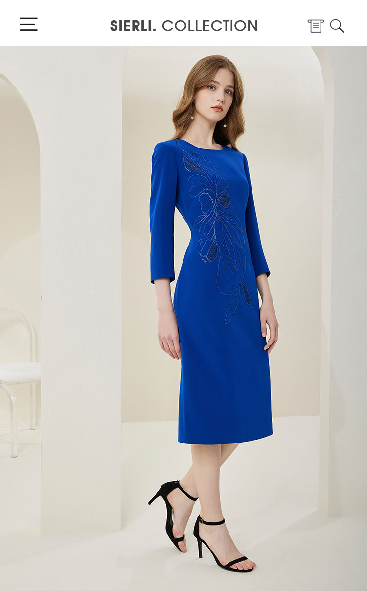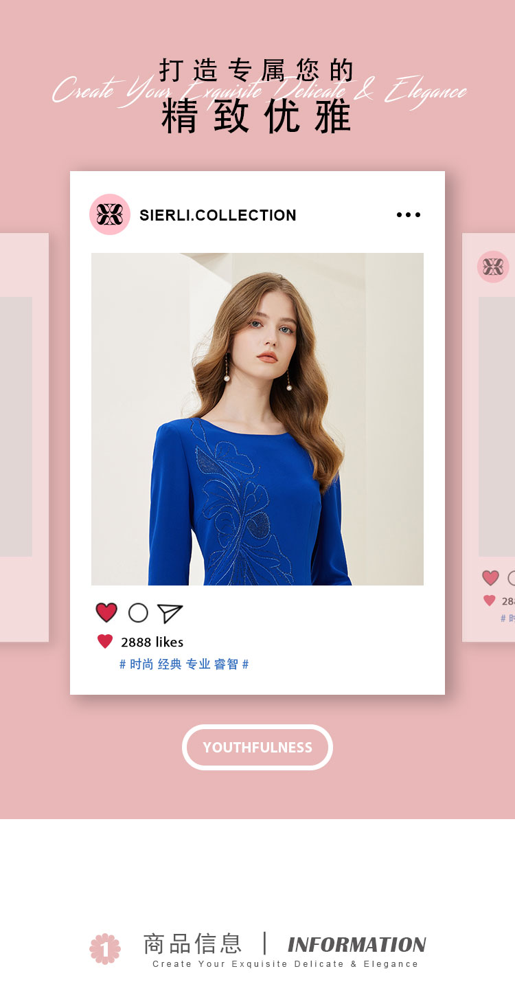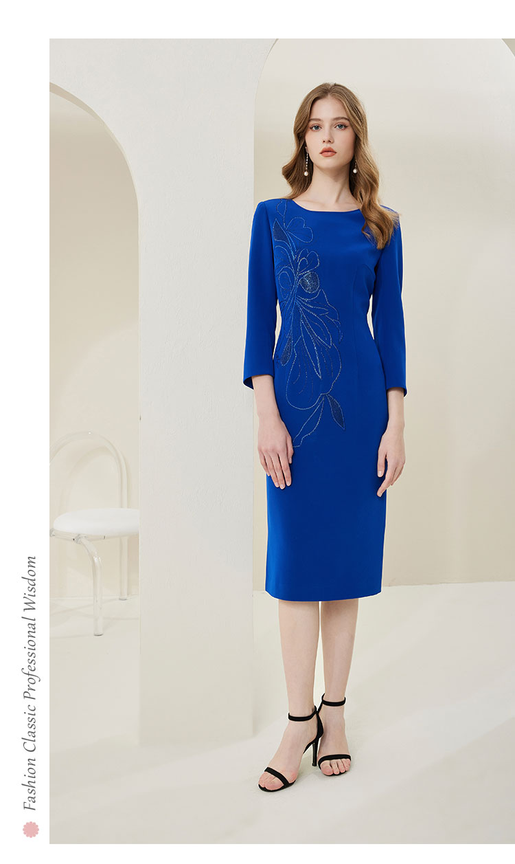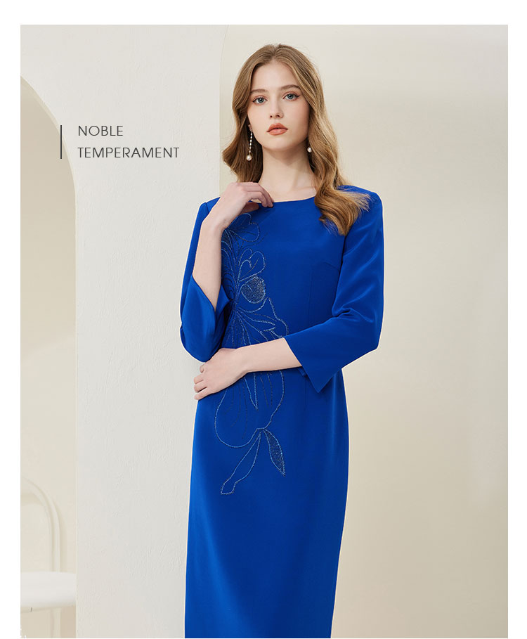 商品名称:[商场同款]春季醋酸烫钻蝴蝶花收腰显瘦圆领长袖连衣裙 566815