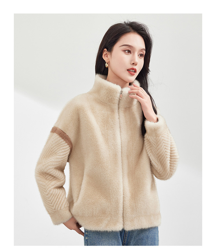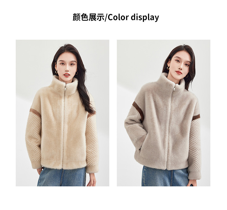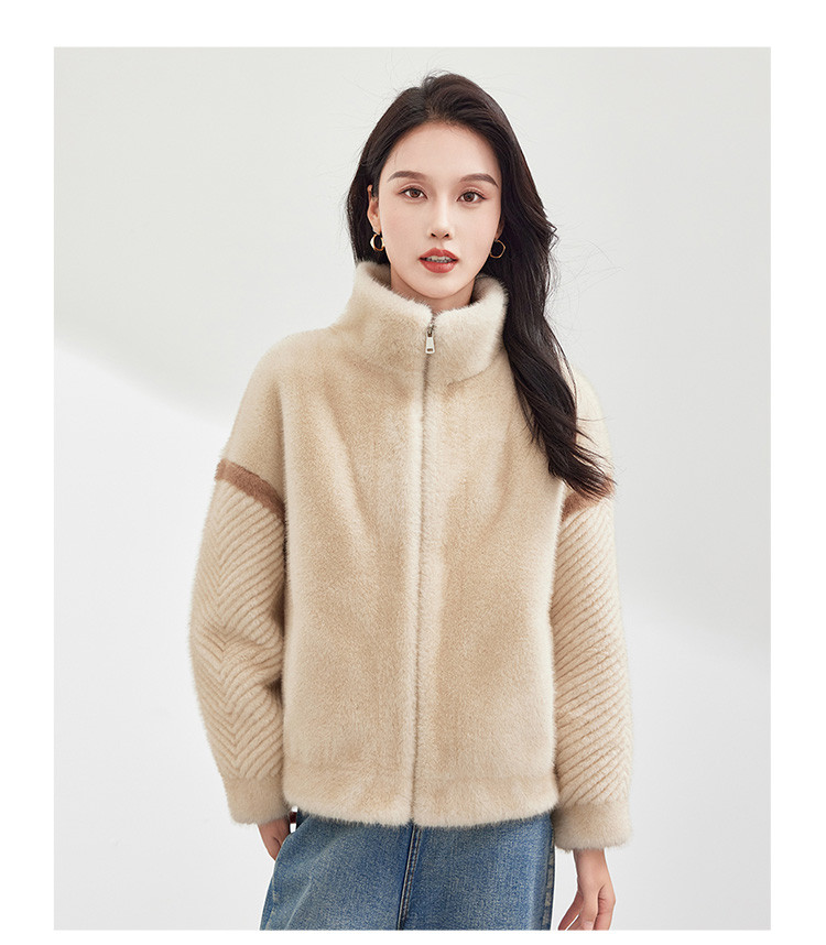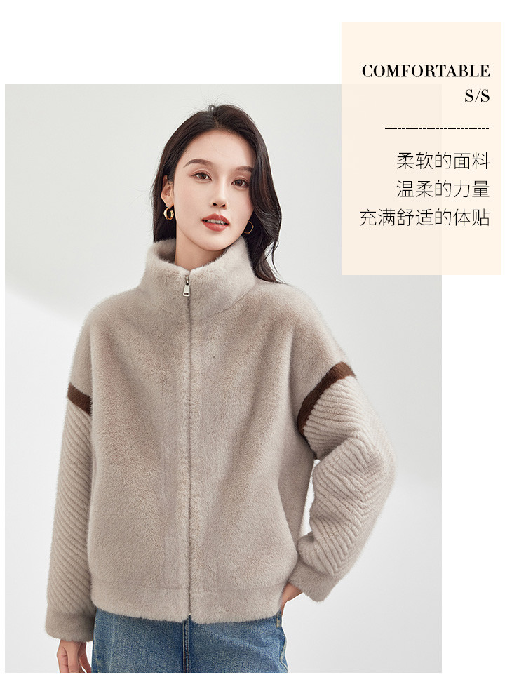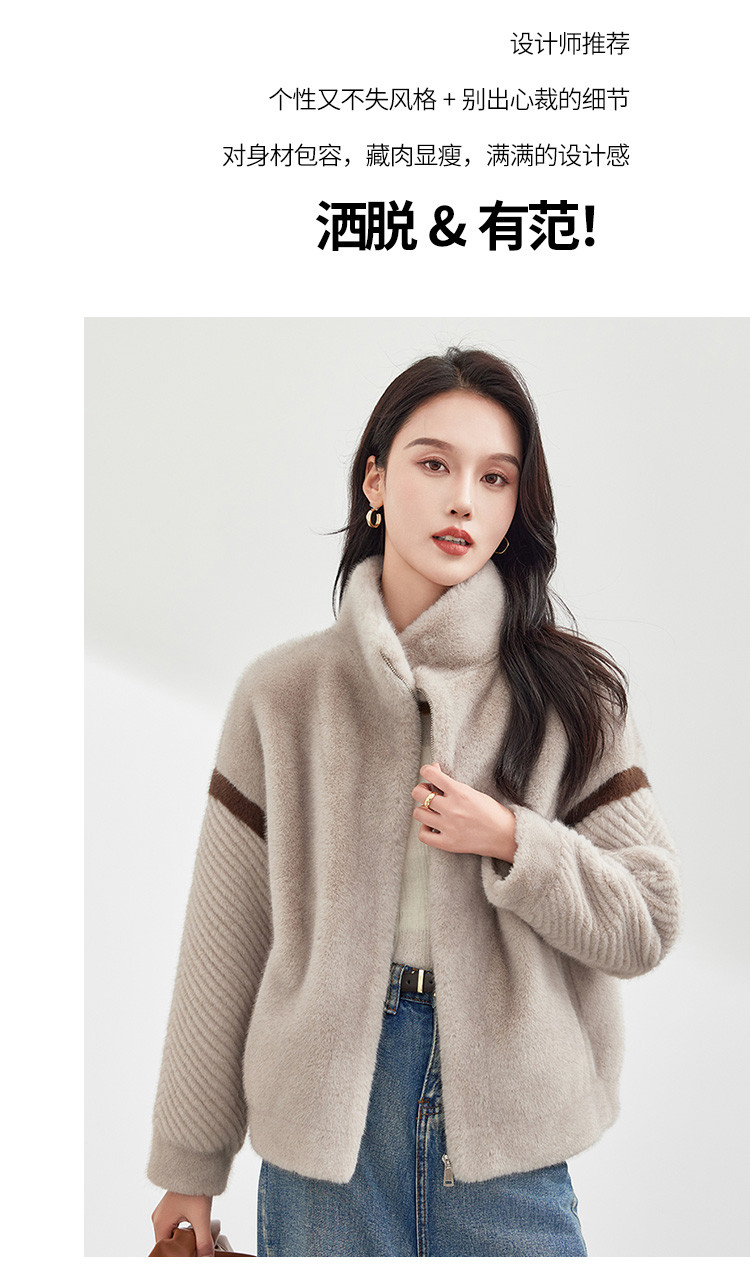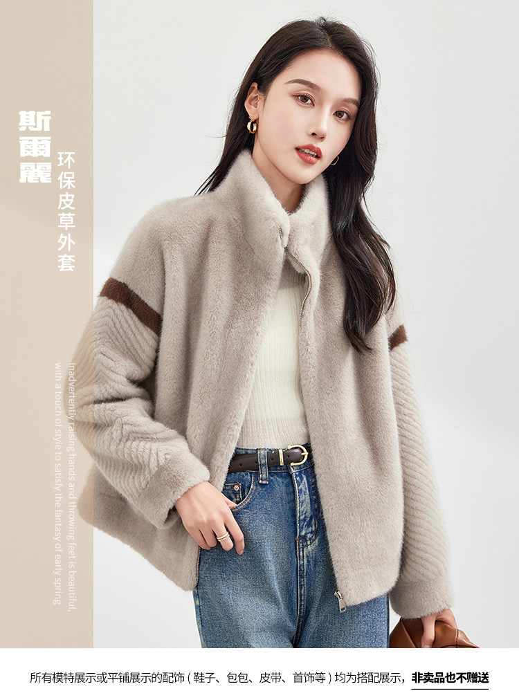 冬季小个子立领保暖仿貂绒环保皮草女式日常通勤休闲仿皮草外套 792607