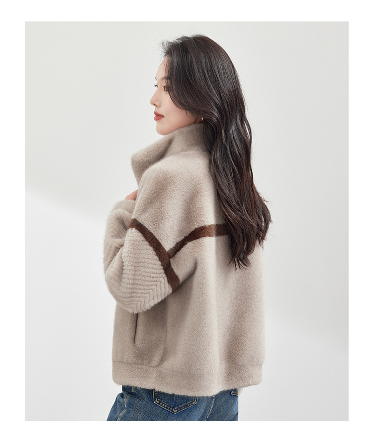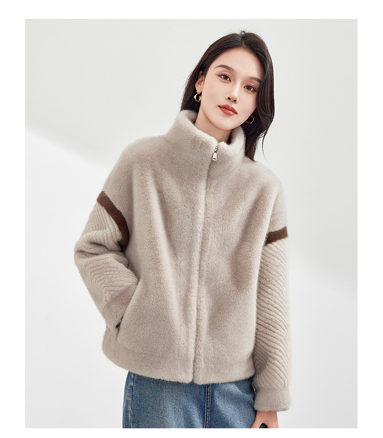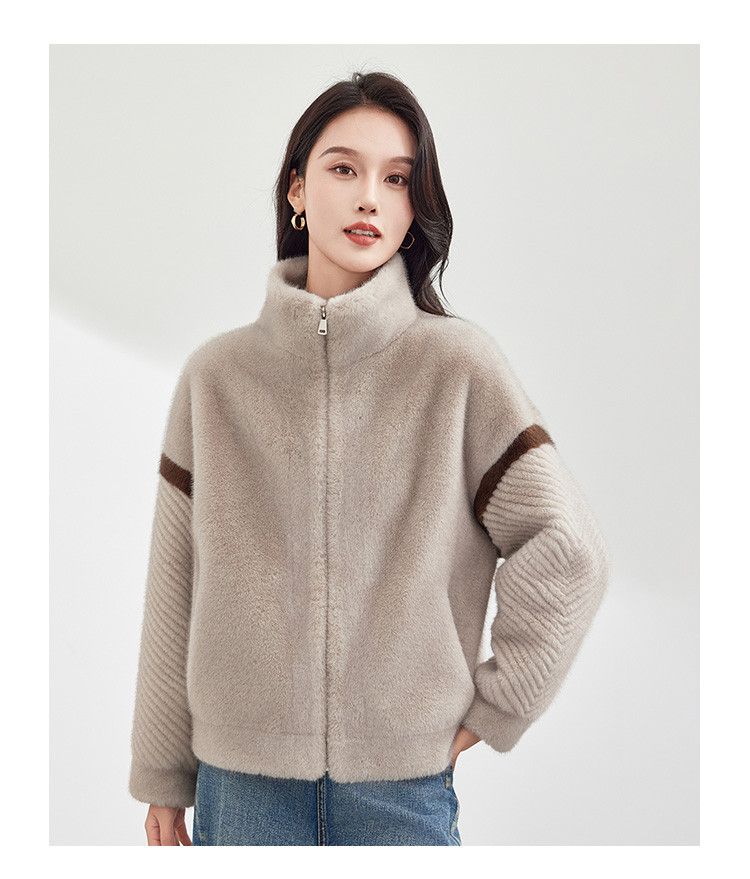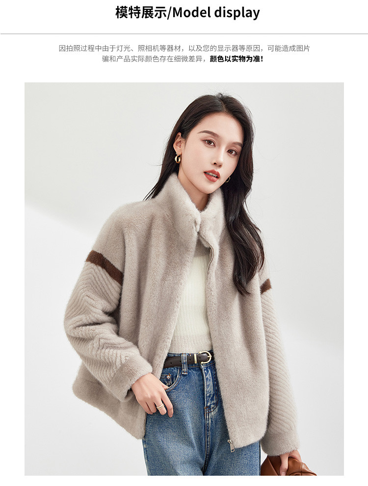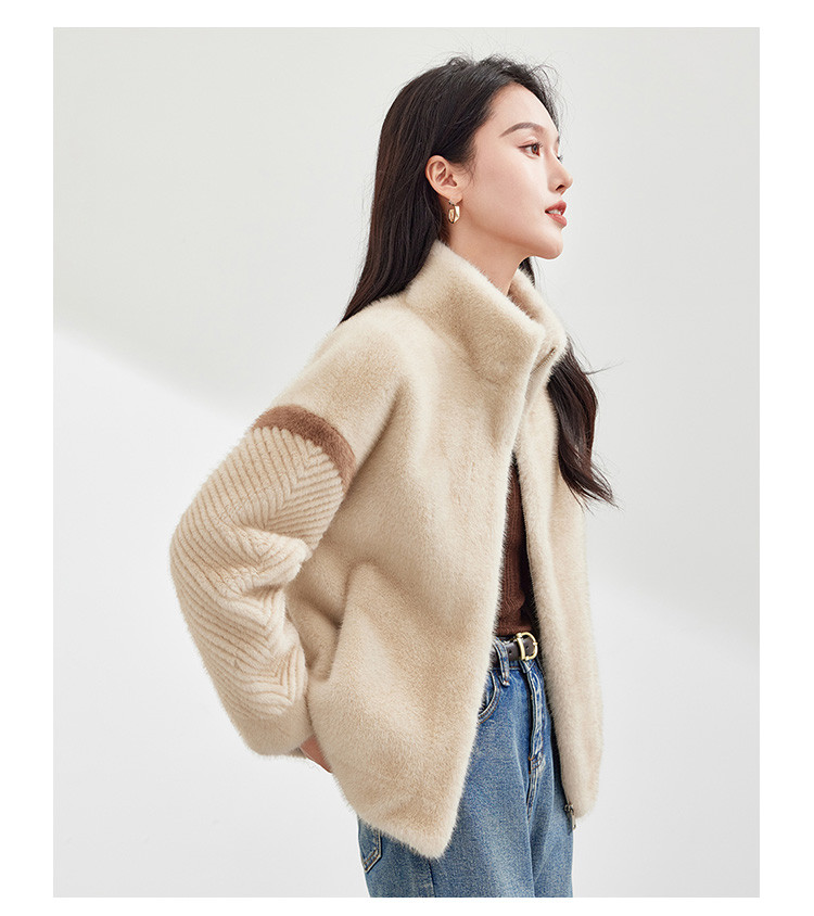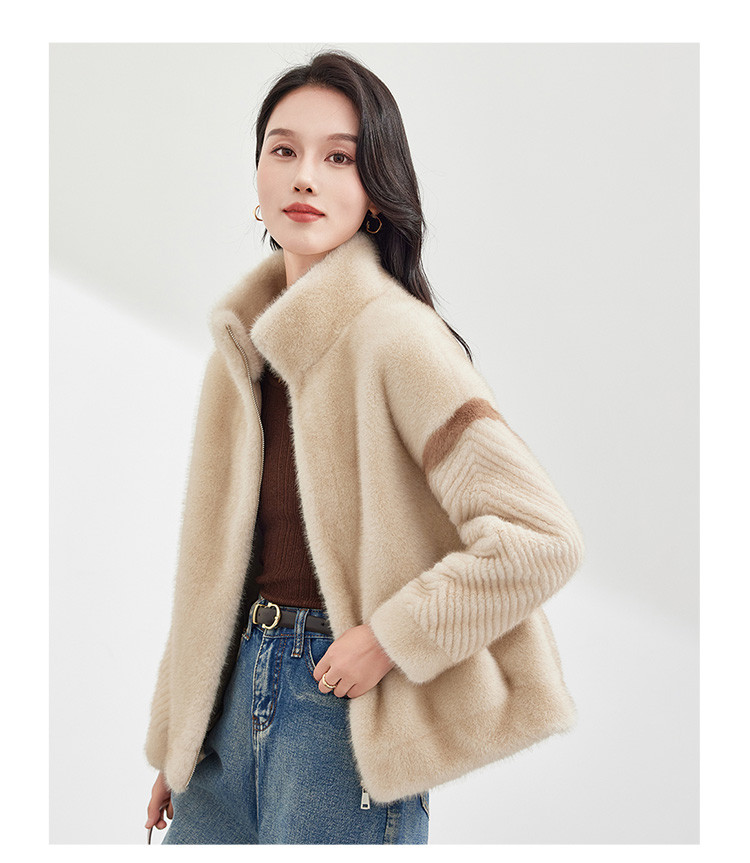 冬季小个子立领保暖仿貂绒环保皮草女式日常通勤休闲仿皮草外套 792607