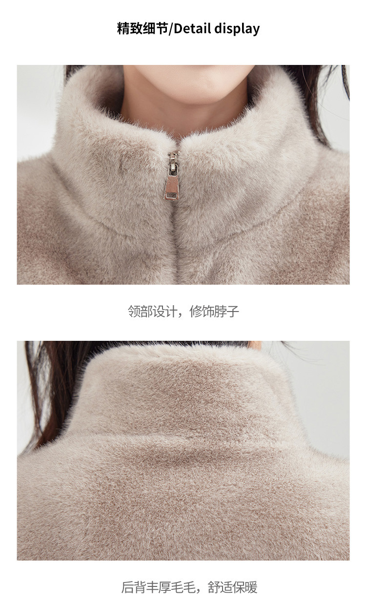 商品名称:冬季小个子立领保暖仿貂绒环保皮草女式日常通勤休闲仿皮草外套 792607