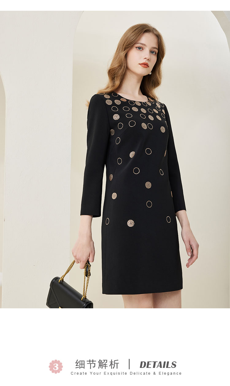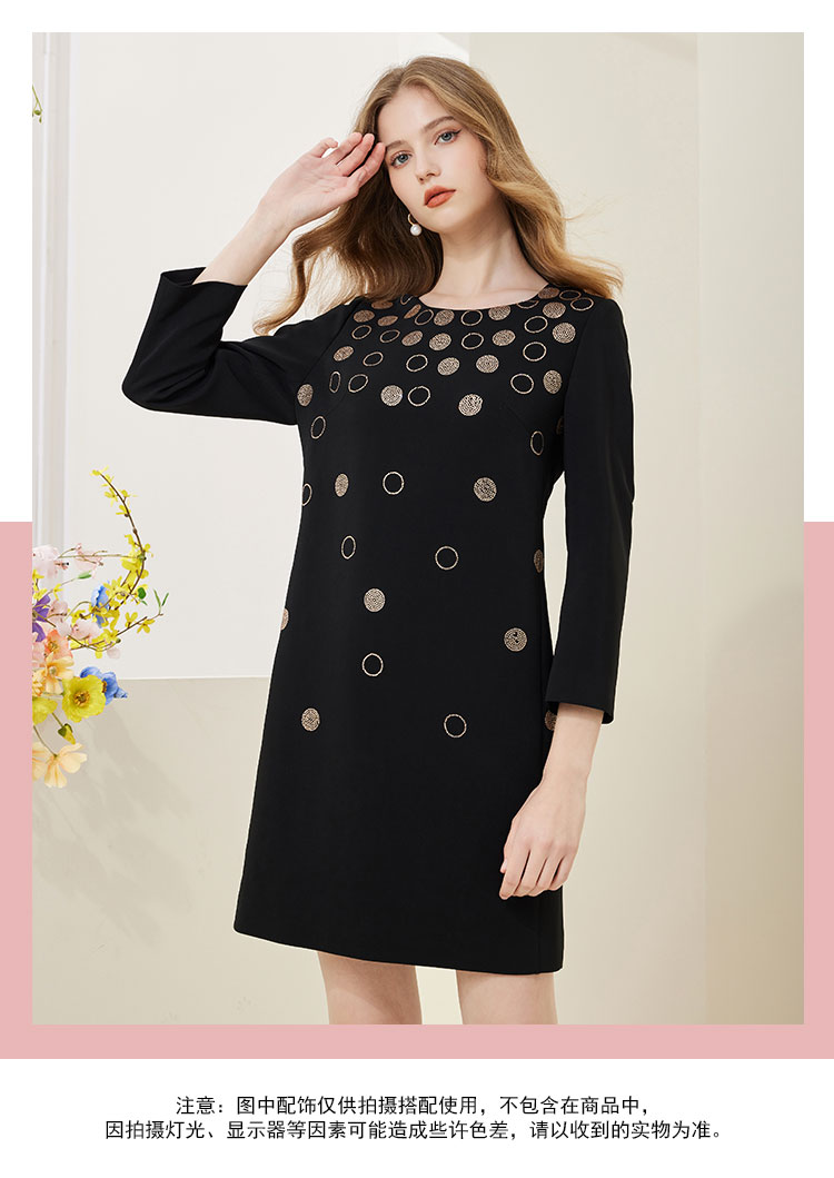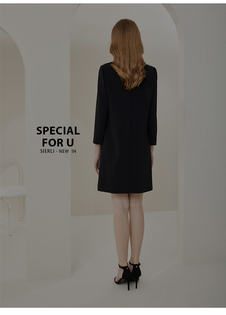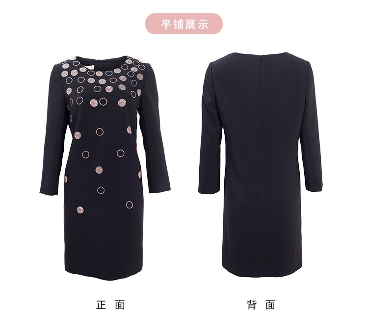 商品名称:[商场同款]春季圆领优雅修身显瘦长袖连衣裙纯色气质 607775