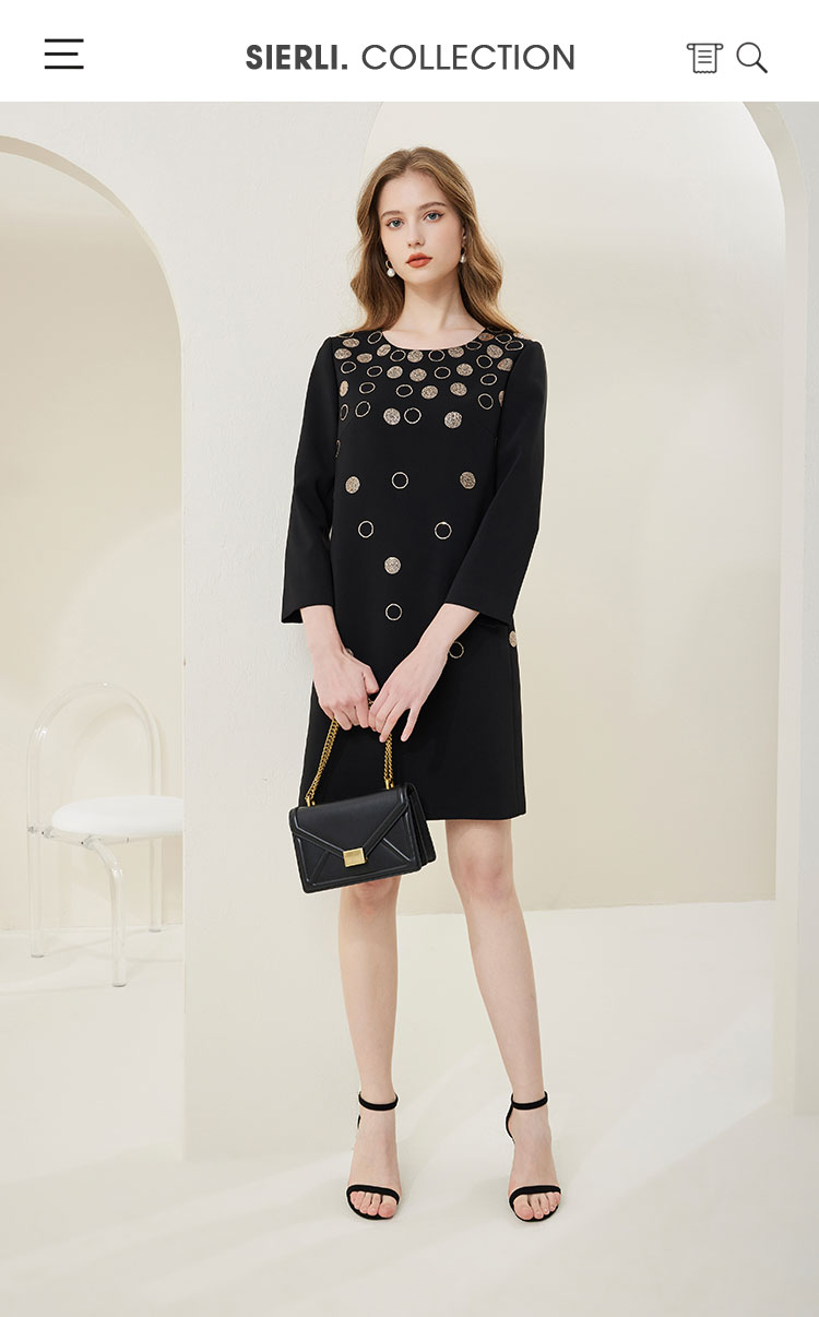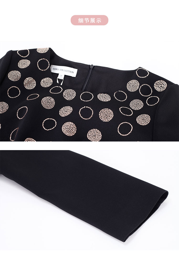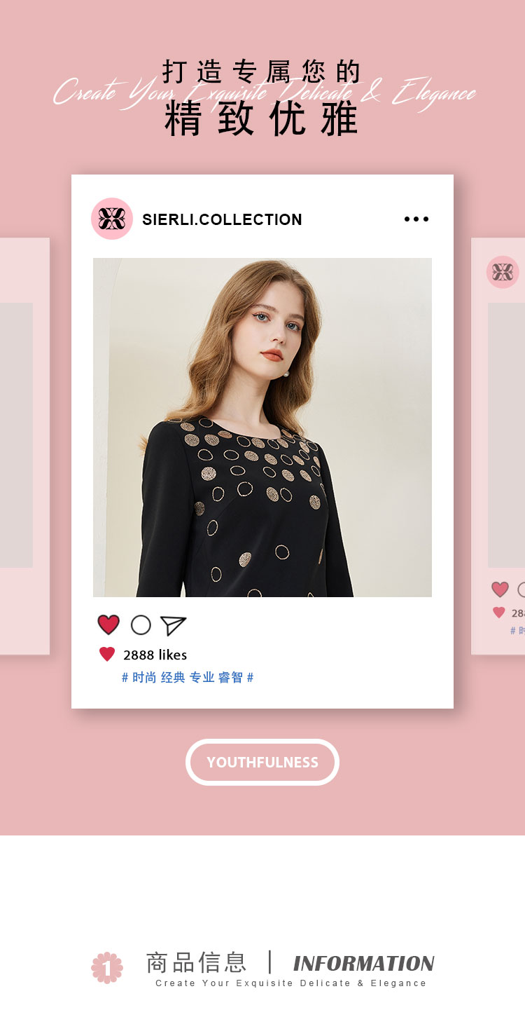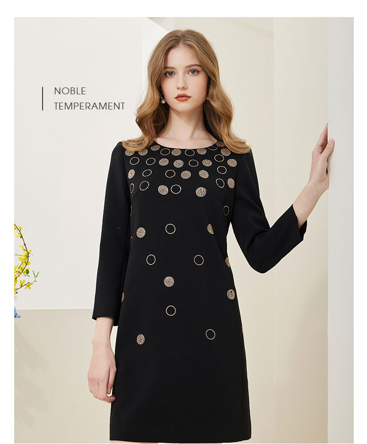 商品名称:[商场同款]春季圆领优雅修身显瘦长袖连衣裙纯色气质 607775