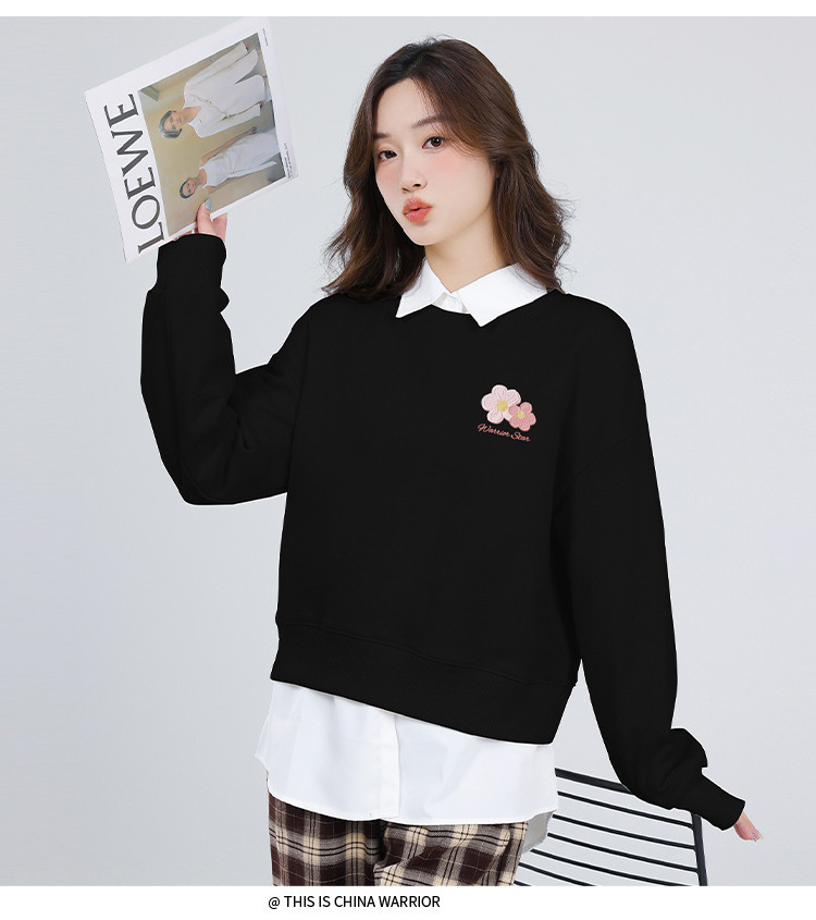 【女装】春秋女式设计感运动休闲圆领短款卫衣小个子上衣潮 488659