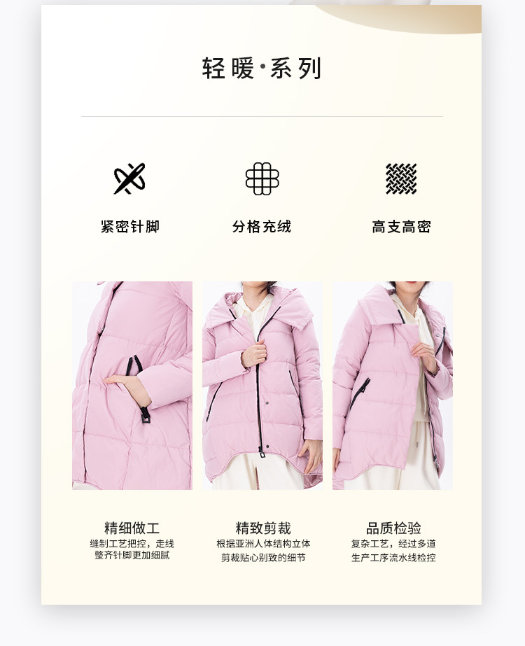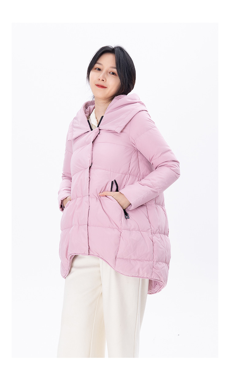 商品名称:女式韩版连帽蓄暖修身中长款厚羽绒服 062559