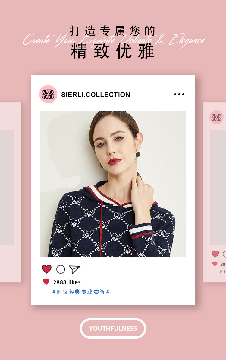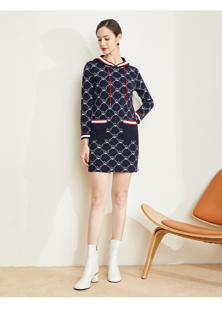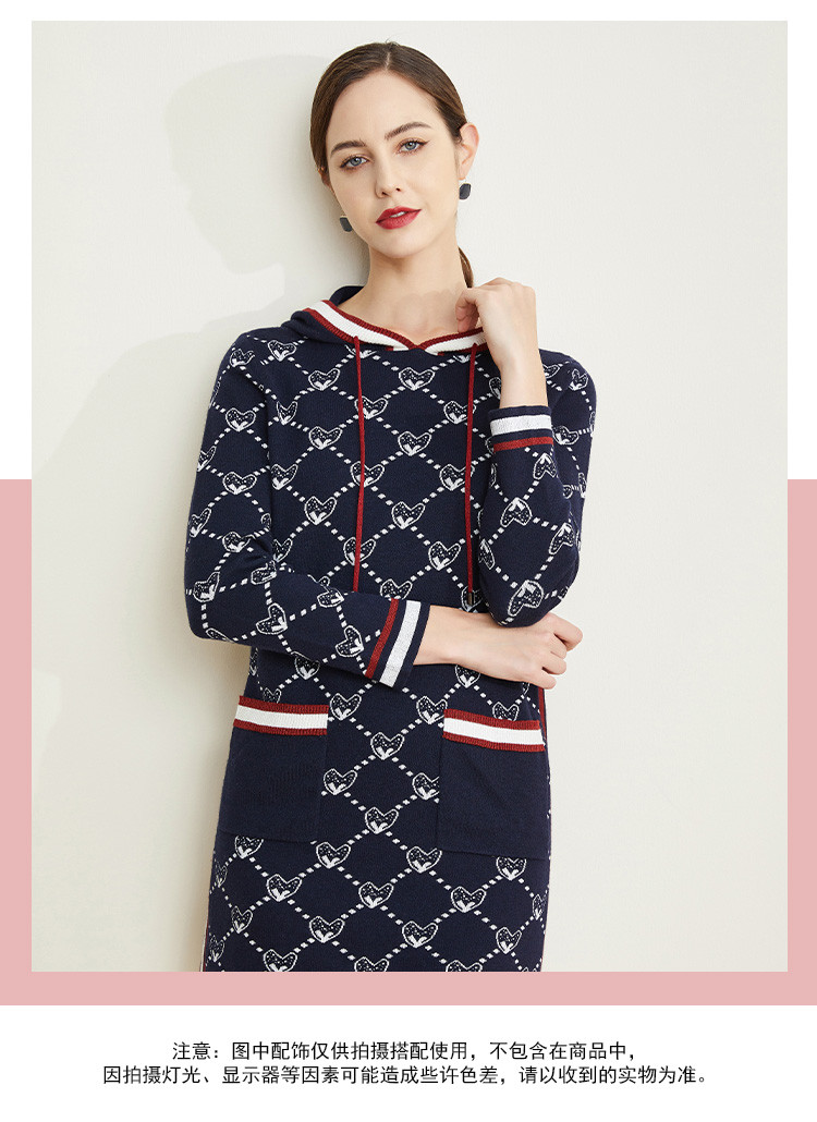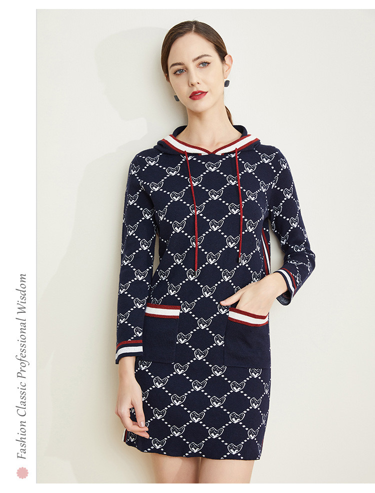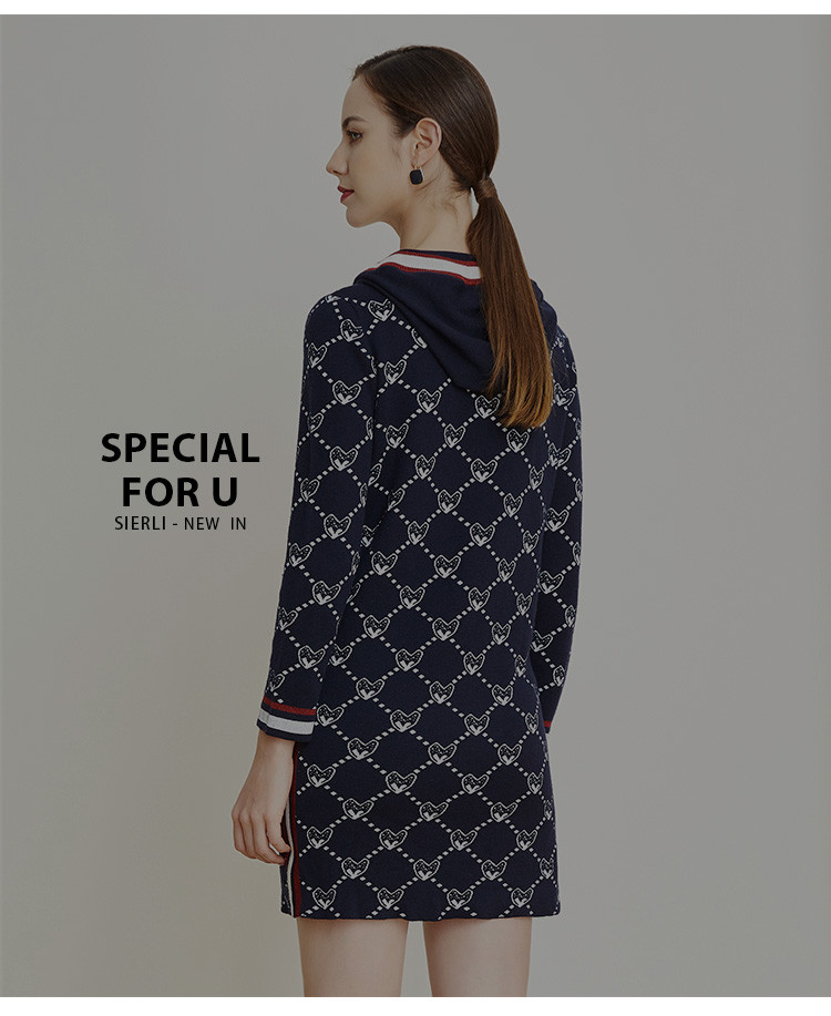 [含羊毛]休闲连帽直筒款运动风针织连衣裙时尚通勤显高显瘦 195999