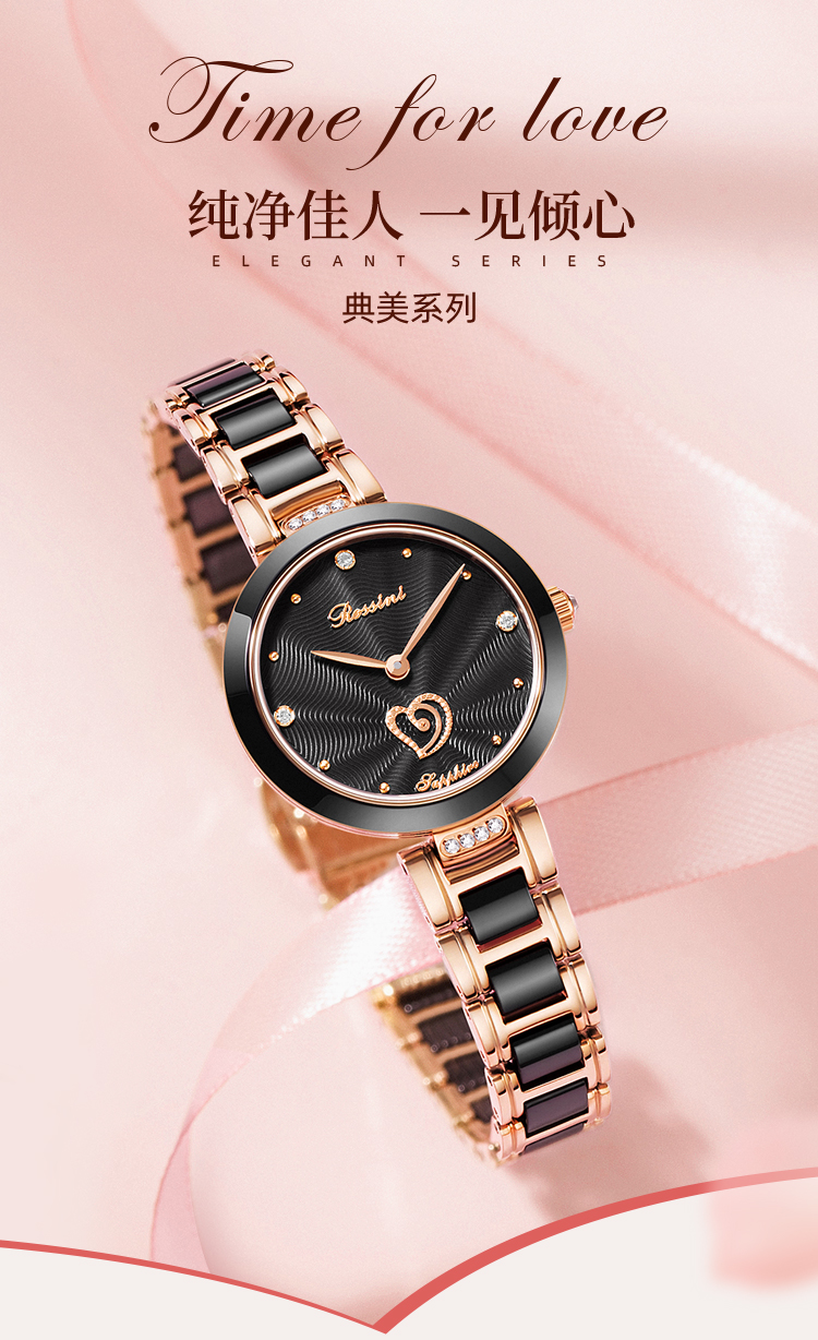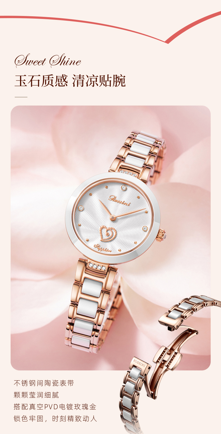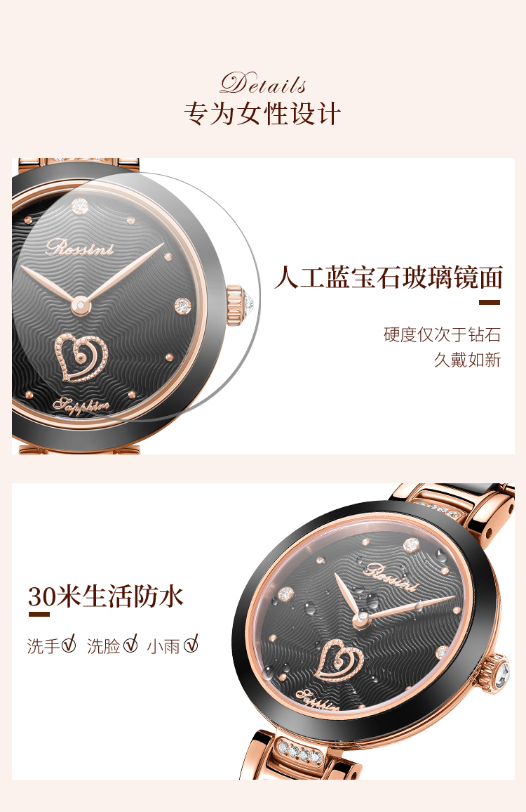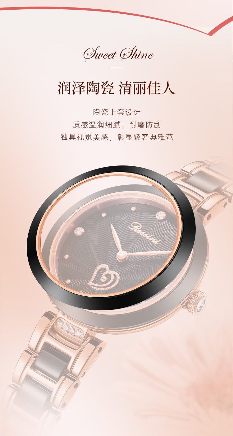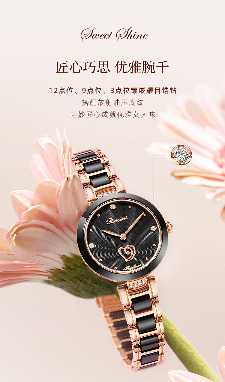 商品名称:Rossini罗西尼 典美系列 石英手表极夜黑间陶瓷带女表50102T04B