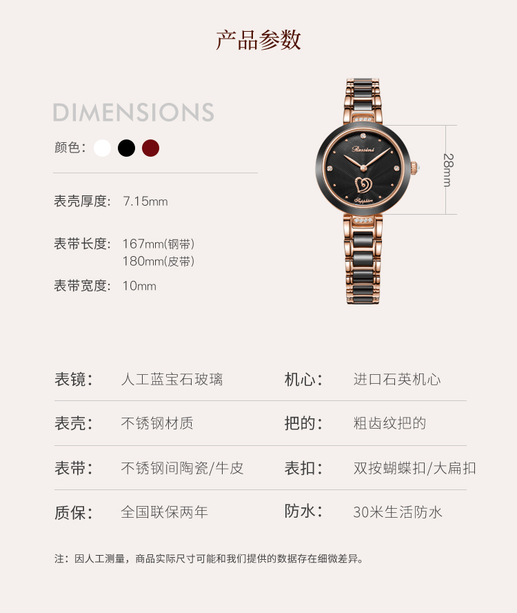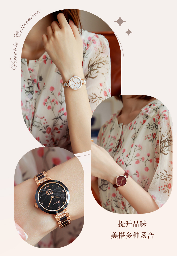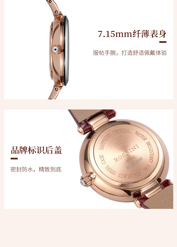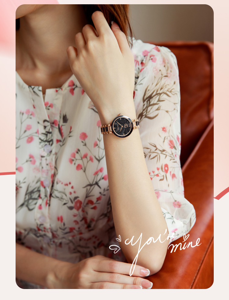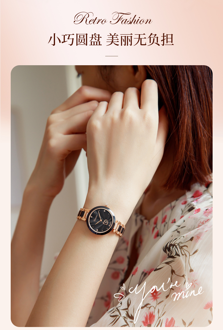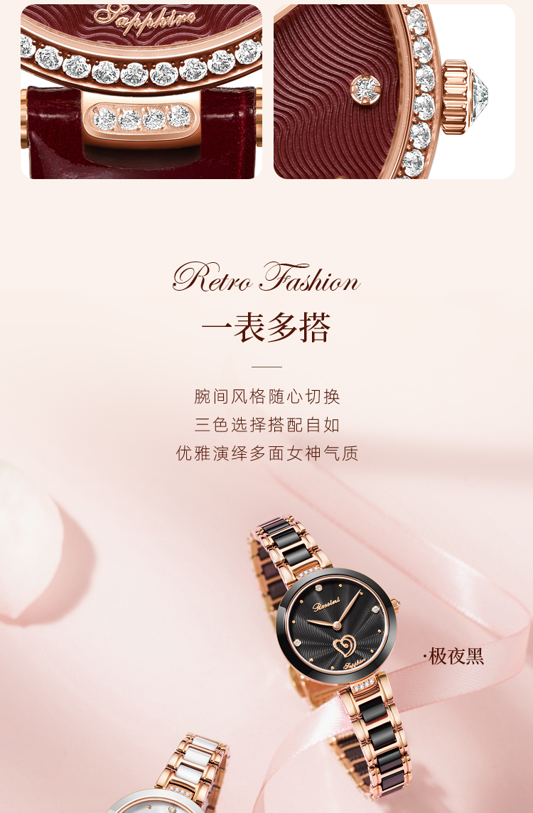 商品名称:Rossini罗西尼 典美系列 石英手表极夜黑间陶瓷带女表50102T04B