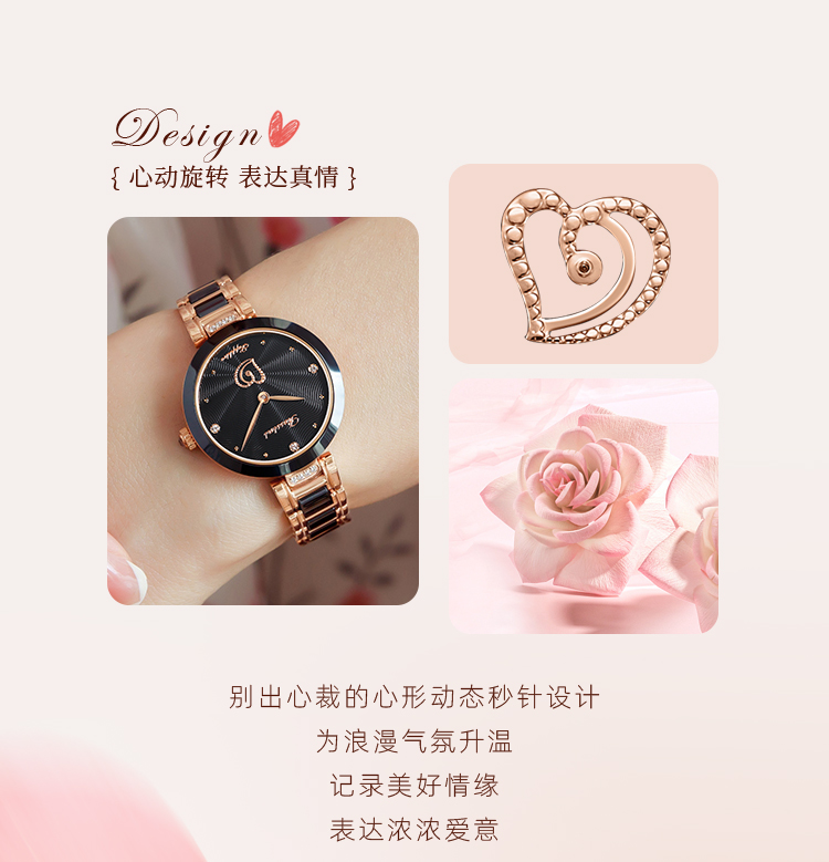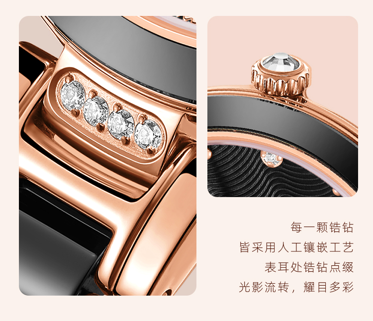 Rossini罗西尼 典美系列 石英手表极夜黑间陶瓷带女表50102T04B