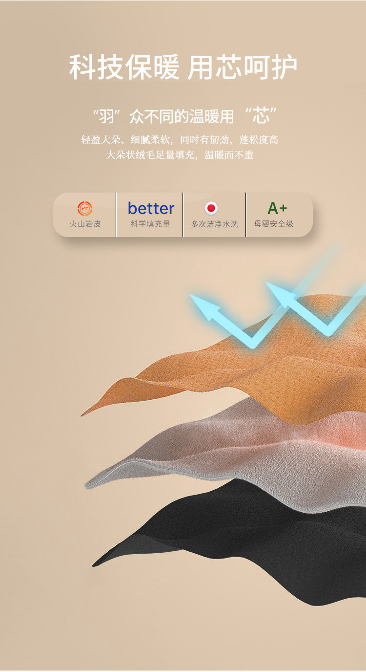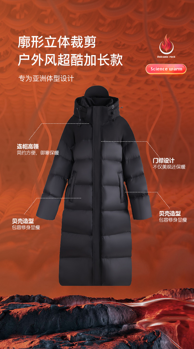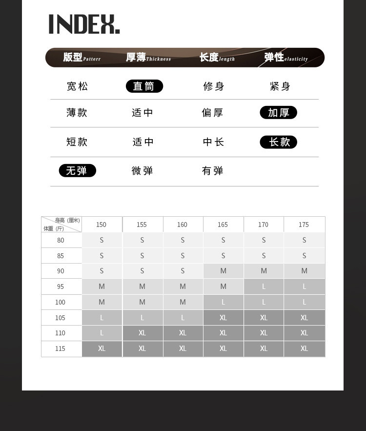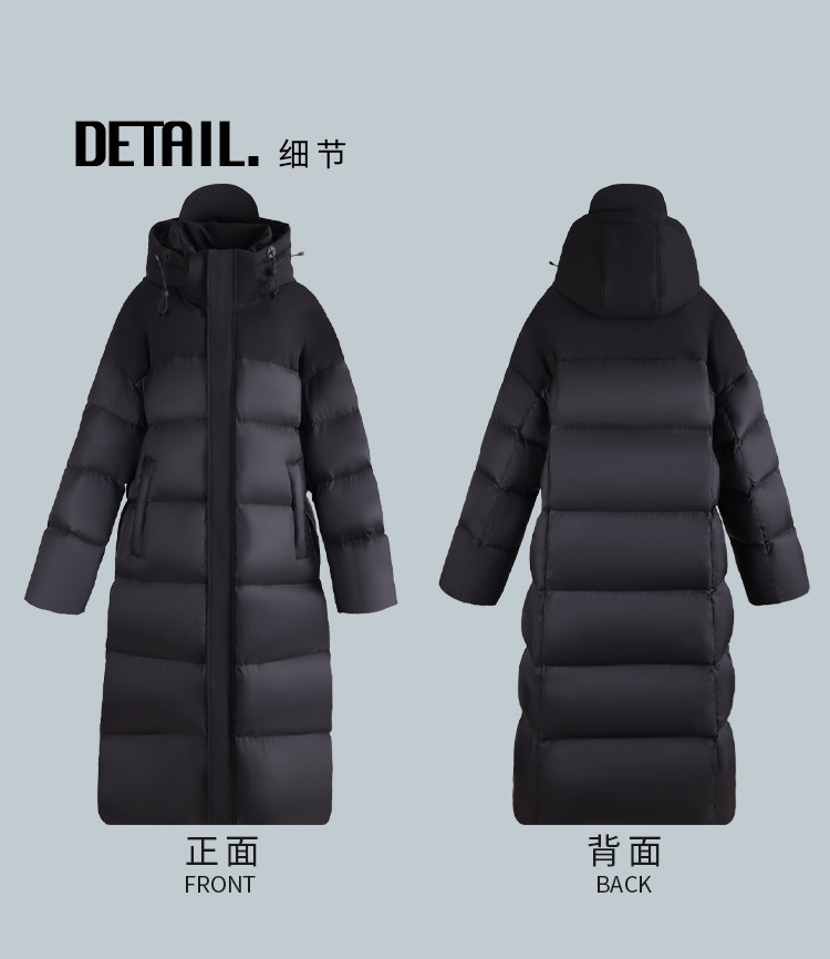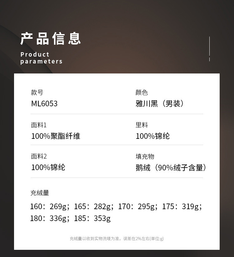 | 尺码 | 衣长(cm) | 肩宽(cm) | 袖长(cm) | 充绒量(g) | 胸围(cm) | 下摆围(cm) | 号型 |