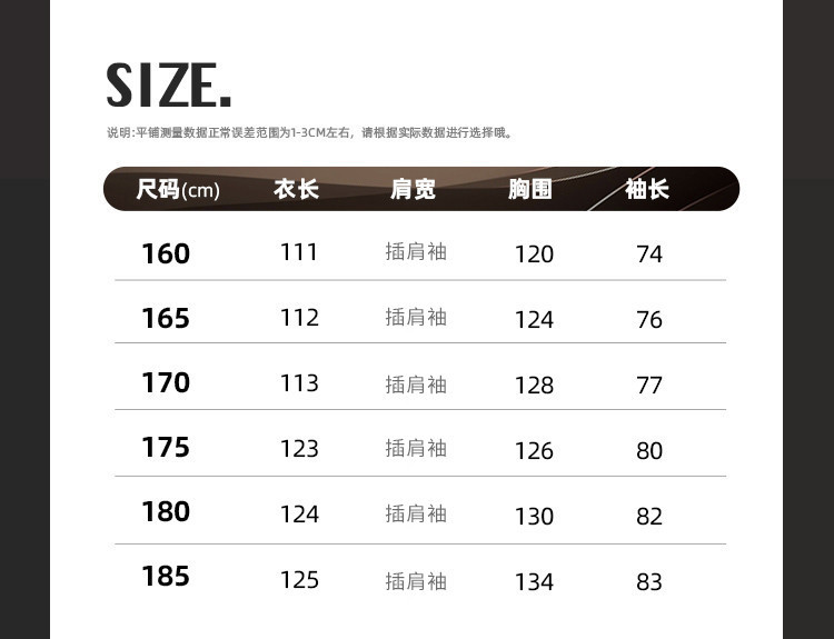 | 3XL | 124 | 插肩袖 | 82 | 336 | 130 | 150 | 180/100A |