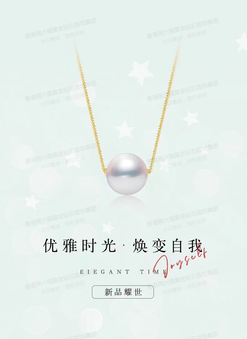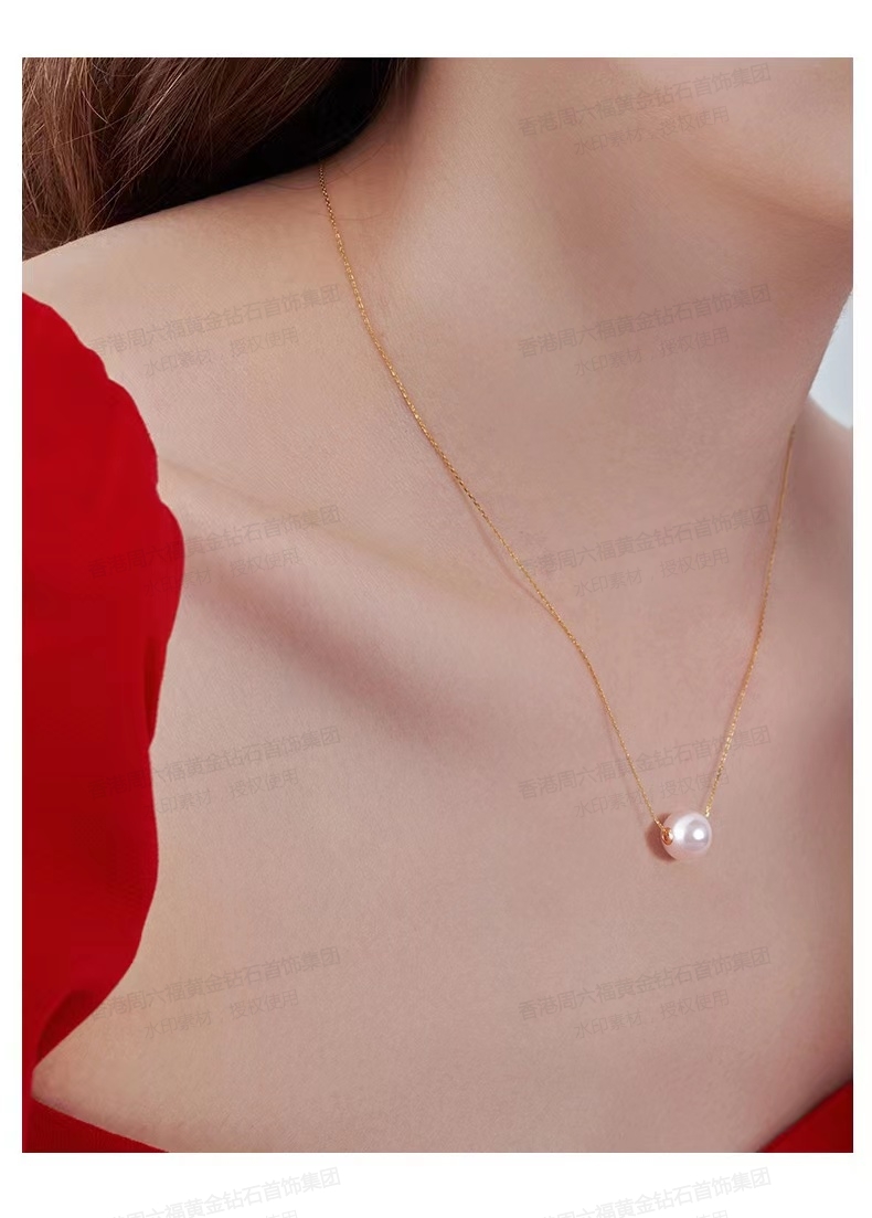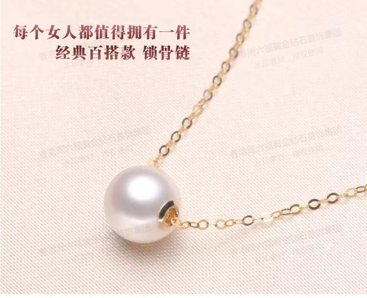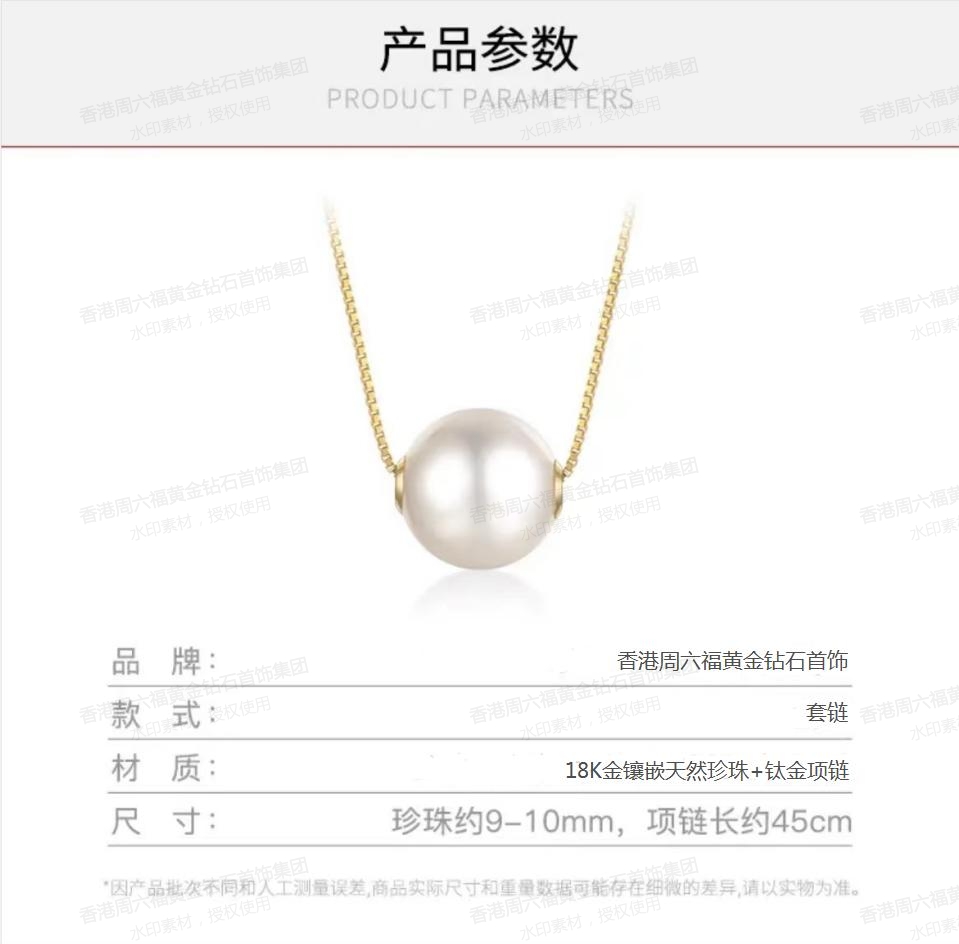 香港周六福18K金镶极光白色珍珠吊坠(18K金+天然珍珠)天然珍珠 每颗会有不同程度微瑕 介意勿拍