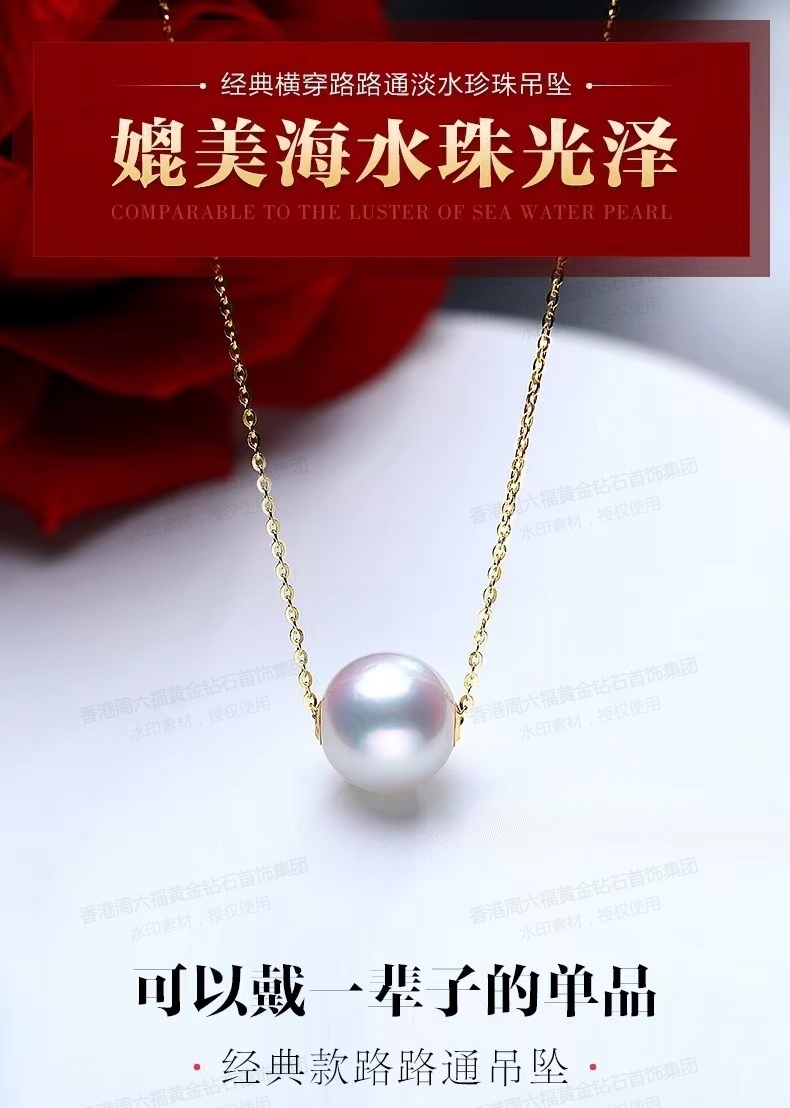 商品名称:香港周六福18K金镶极光白色珍珠吊坠(18K金+天然珍珠)天然珍珠 每颗会有不同程度微瑕 介意勿拍