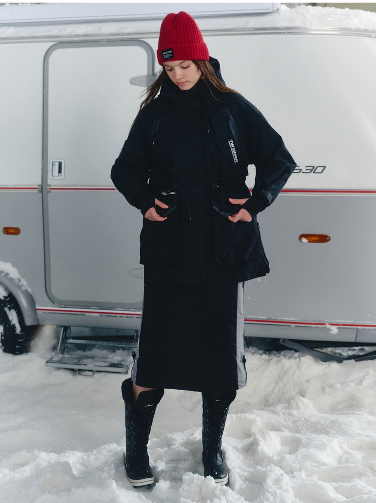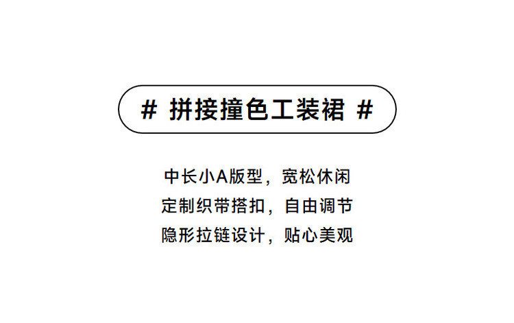 商品名称:小熊春秋款拼接撞色工装裙宽松A字中长裙女士 025025