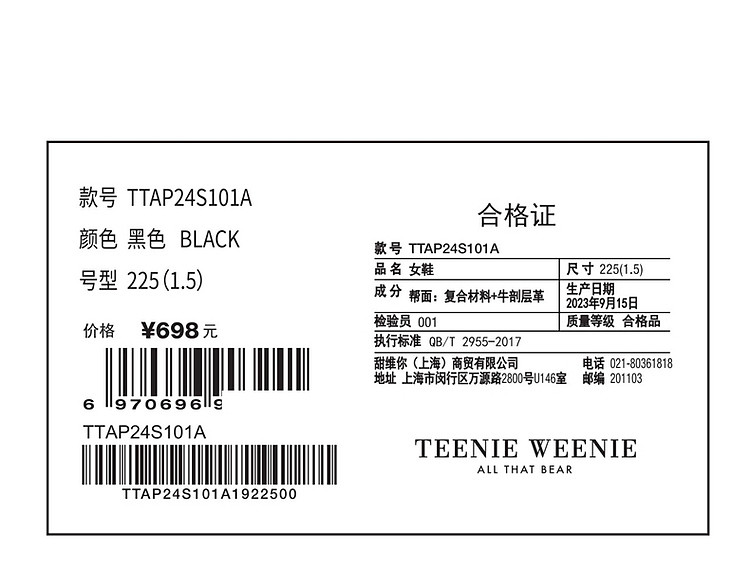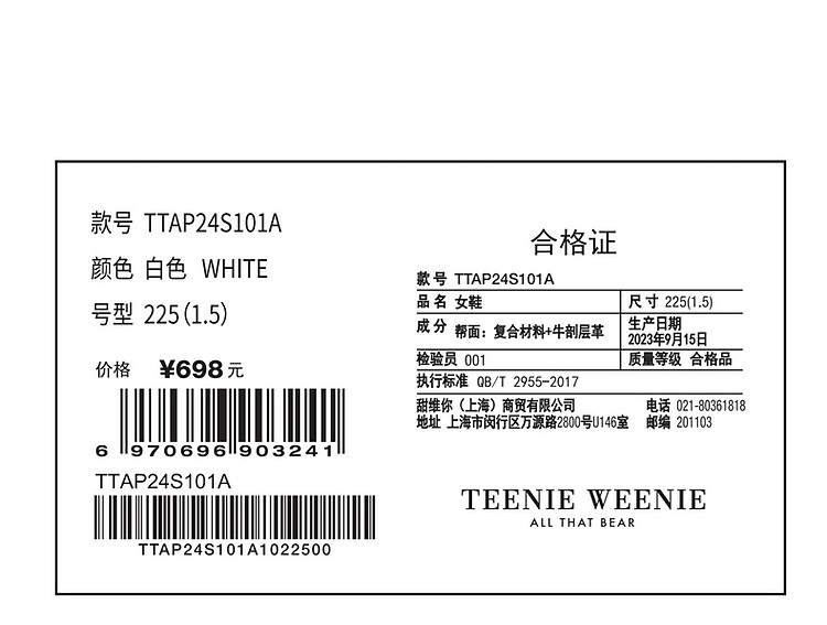 商品名称:【赵露思同款】小熊春季德训鞋时尚女鞋 596609