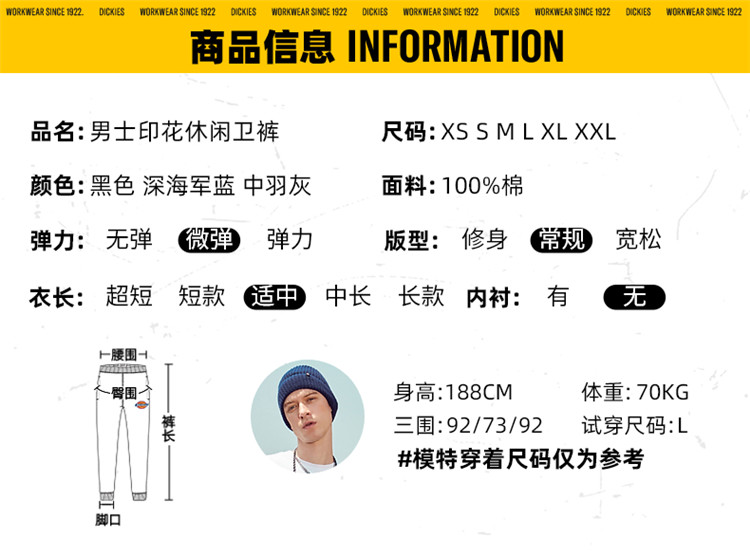 商品名称:Dickies印花男式春秋季休闲卫裤 DK007066 573904