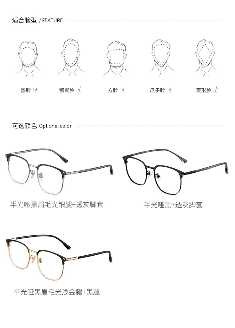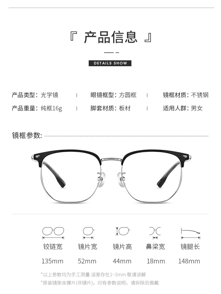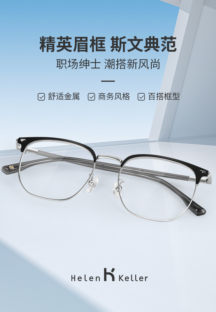 商品名称:海伦凯勒近视眼镜经典百搭休闲商务眉框 722651